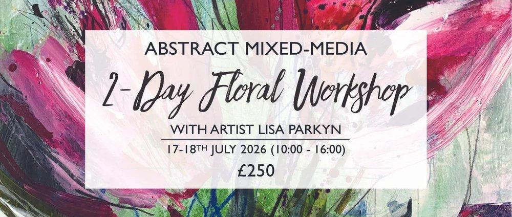 Join talented artist and tutor Lisa Parkyn for a vibrant two day abstract mixed-media floral workshop at The Town Mill's Bakehouse Studio on Friday 17 and Saturday 18 July 2026 from 10am until 4pm.