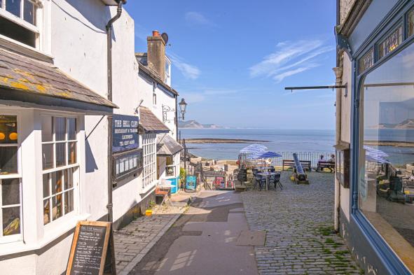 From this elevated vantage point it is possible to see a view of The Cobb to the west and the wide panorama of the eastern part of the town and coastline - from the cliffs of Black Ven, behind the tower of the parish church and along much of the coast, taking in Charmouth, Golden Cap, Seatown, West Bay, Chesil Beach and, on a clear day, the Isle of Portland.
