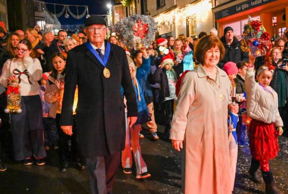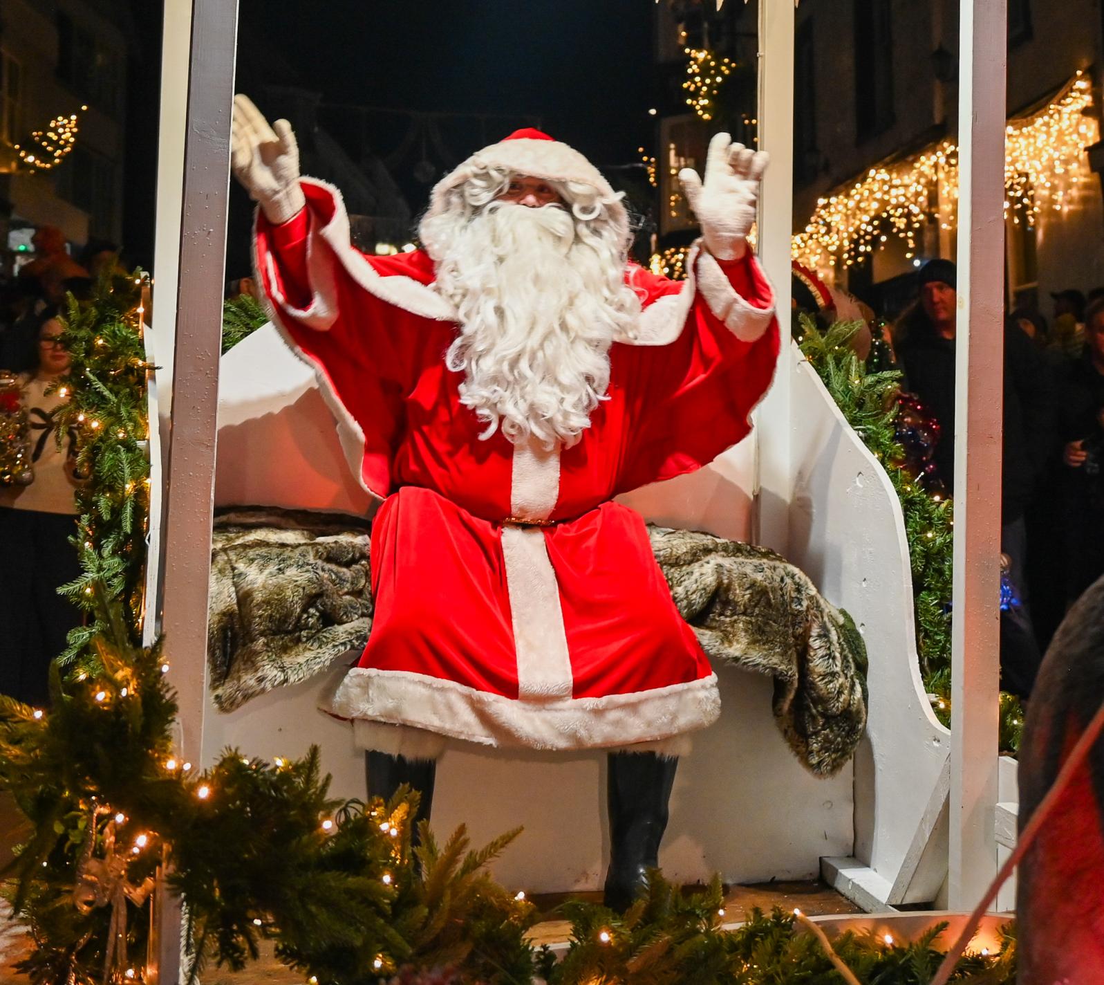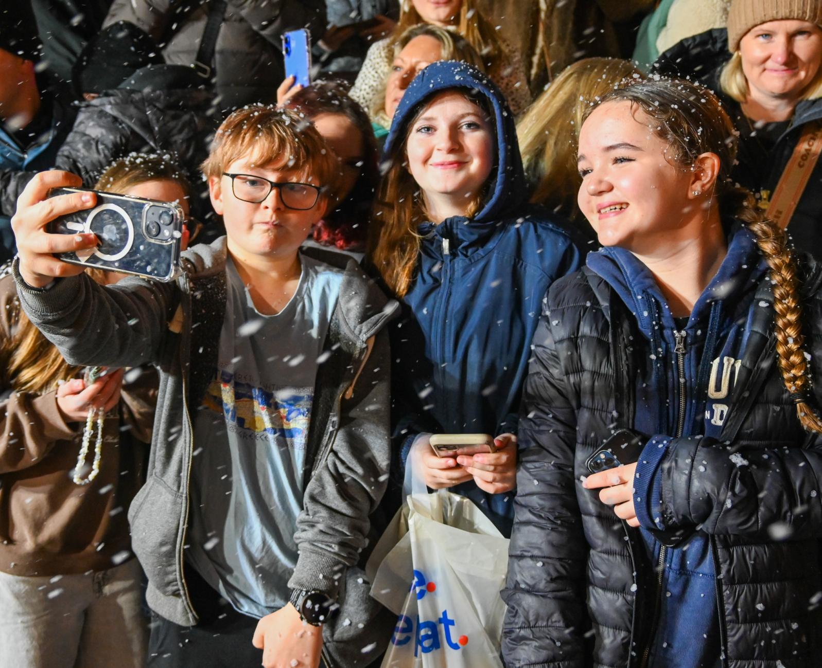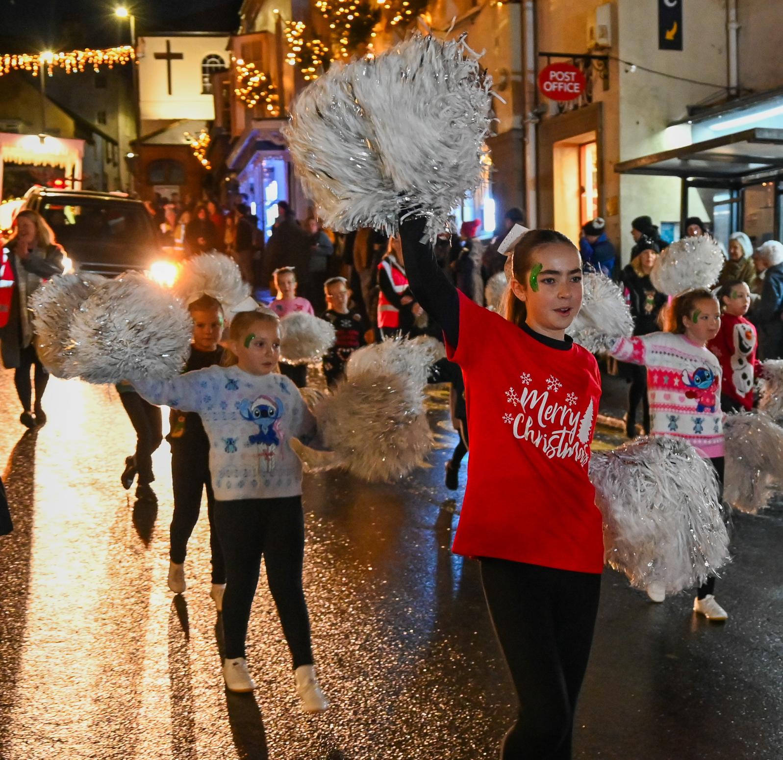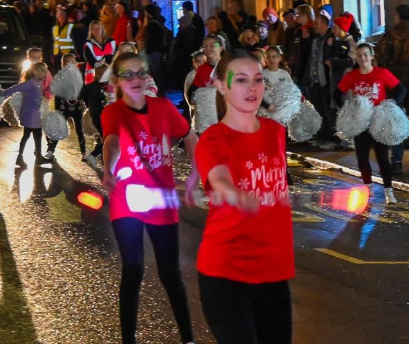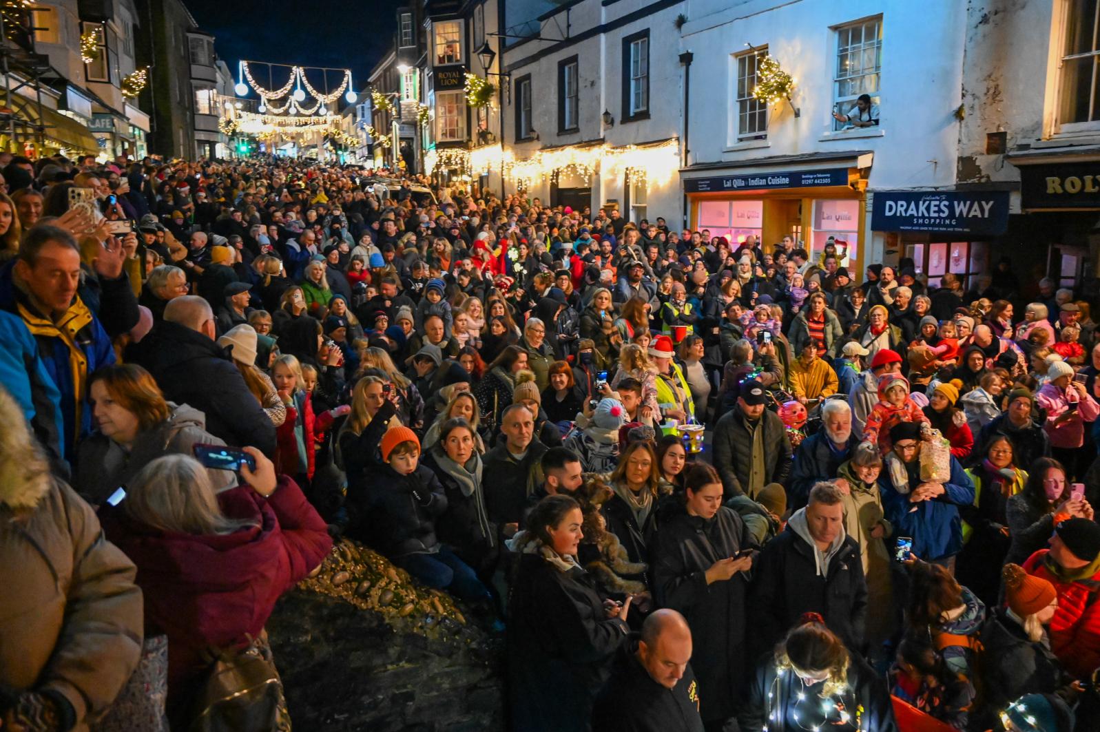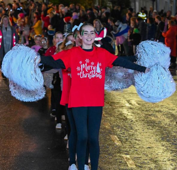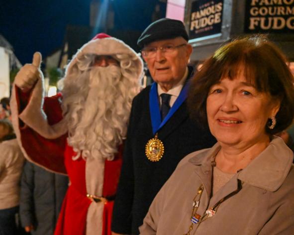 The rain eased just in time for celebrations as a huge crowd gathered on Broad Street on Saturday evening to witness the magical switching-on of the town’s Christmas lights.