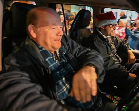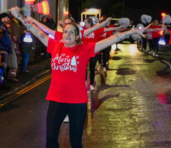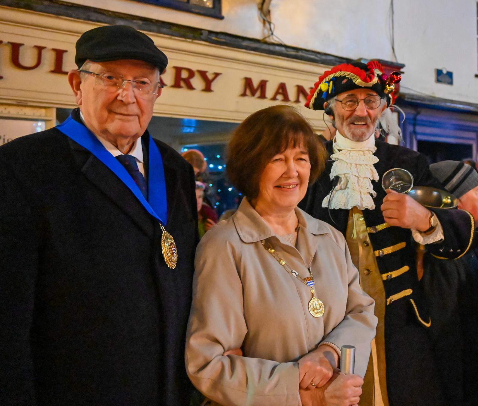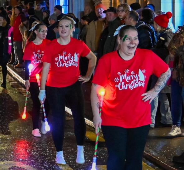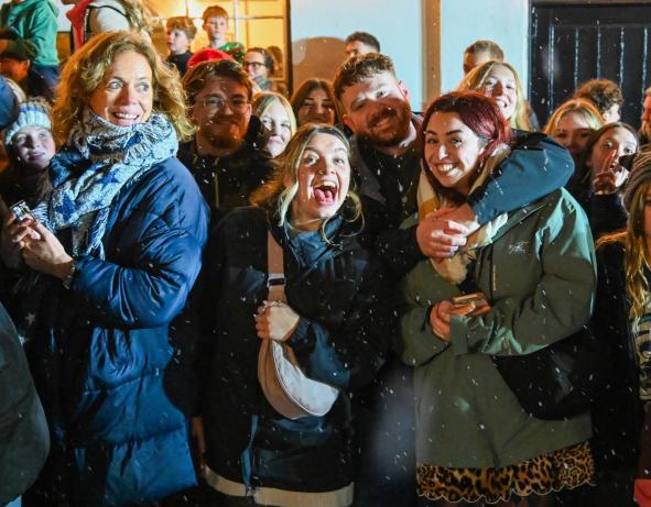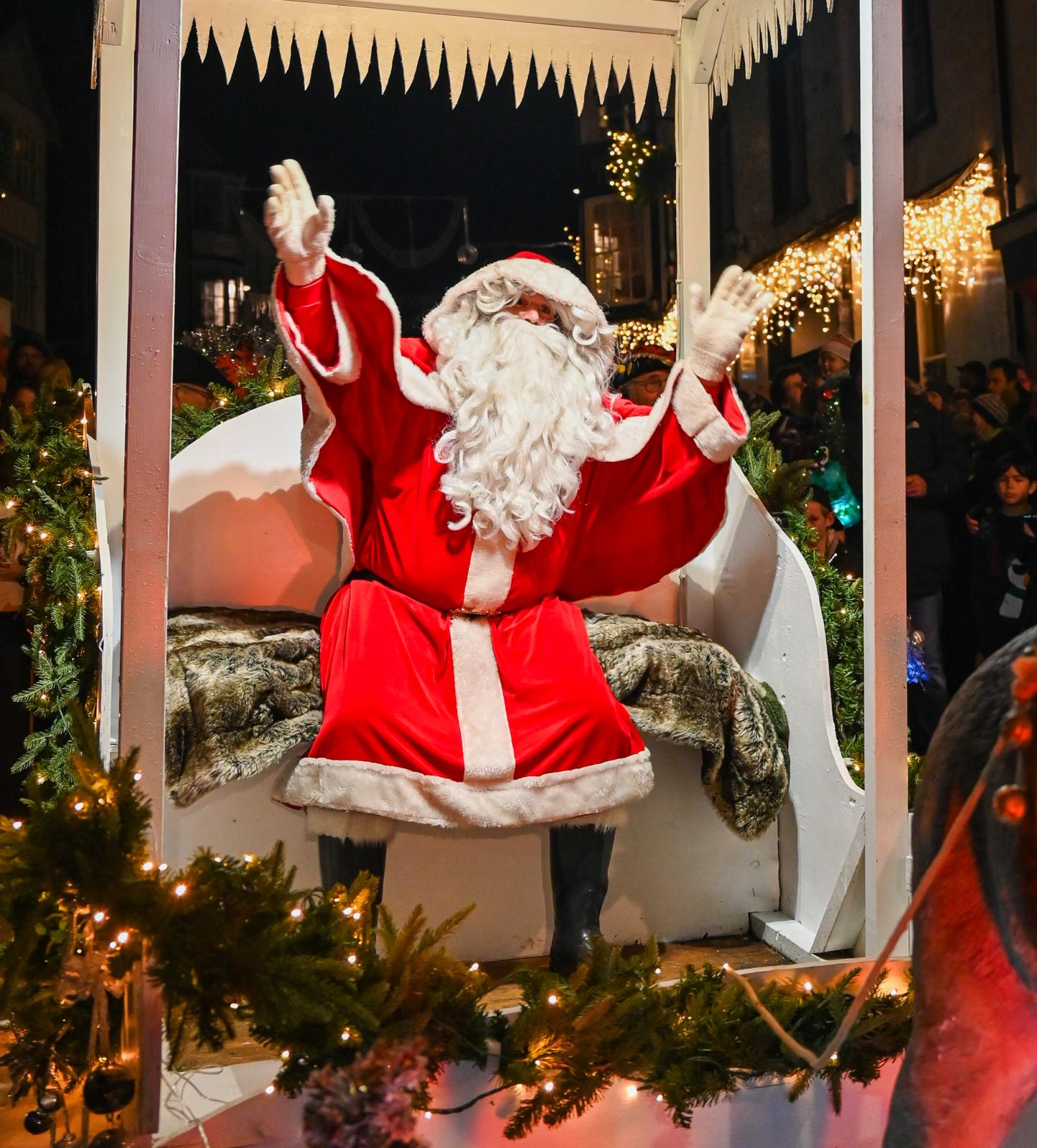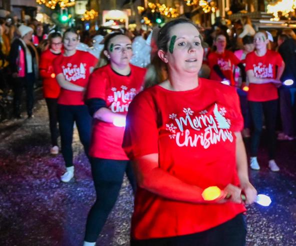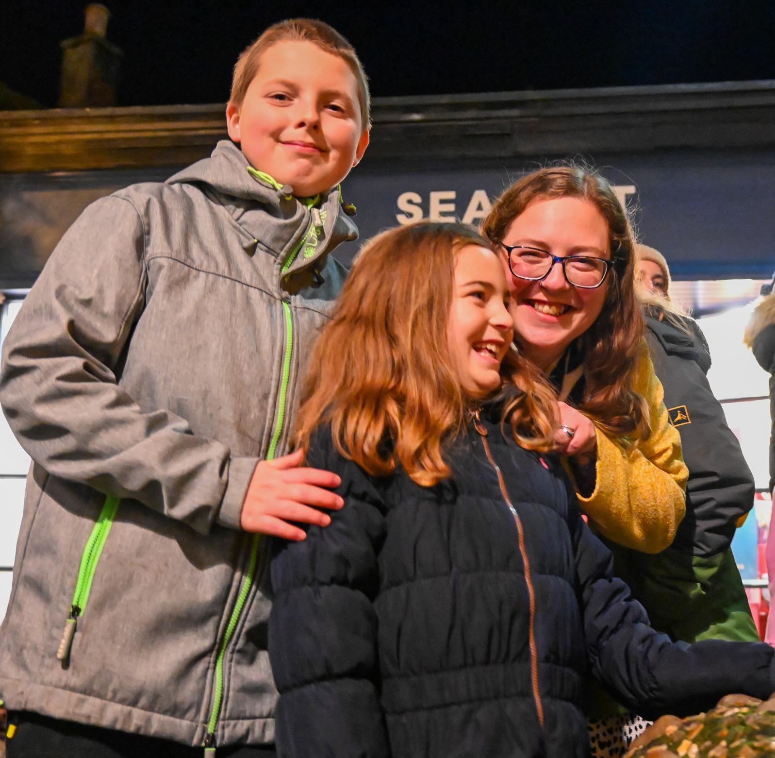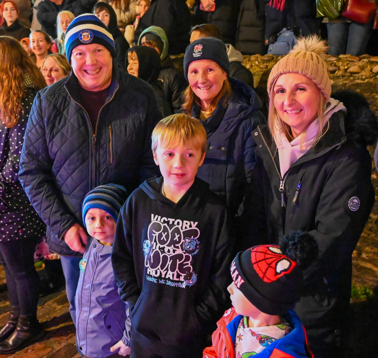 The rain eased just in time for celebrations as a huge crowd gathered on Broad Street on Saturday evening to witness the magical switching-on of the town’s Christmas lights.