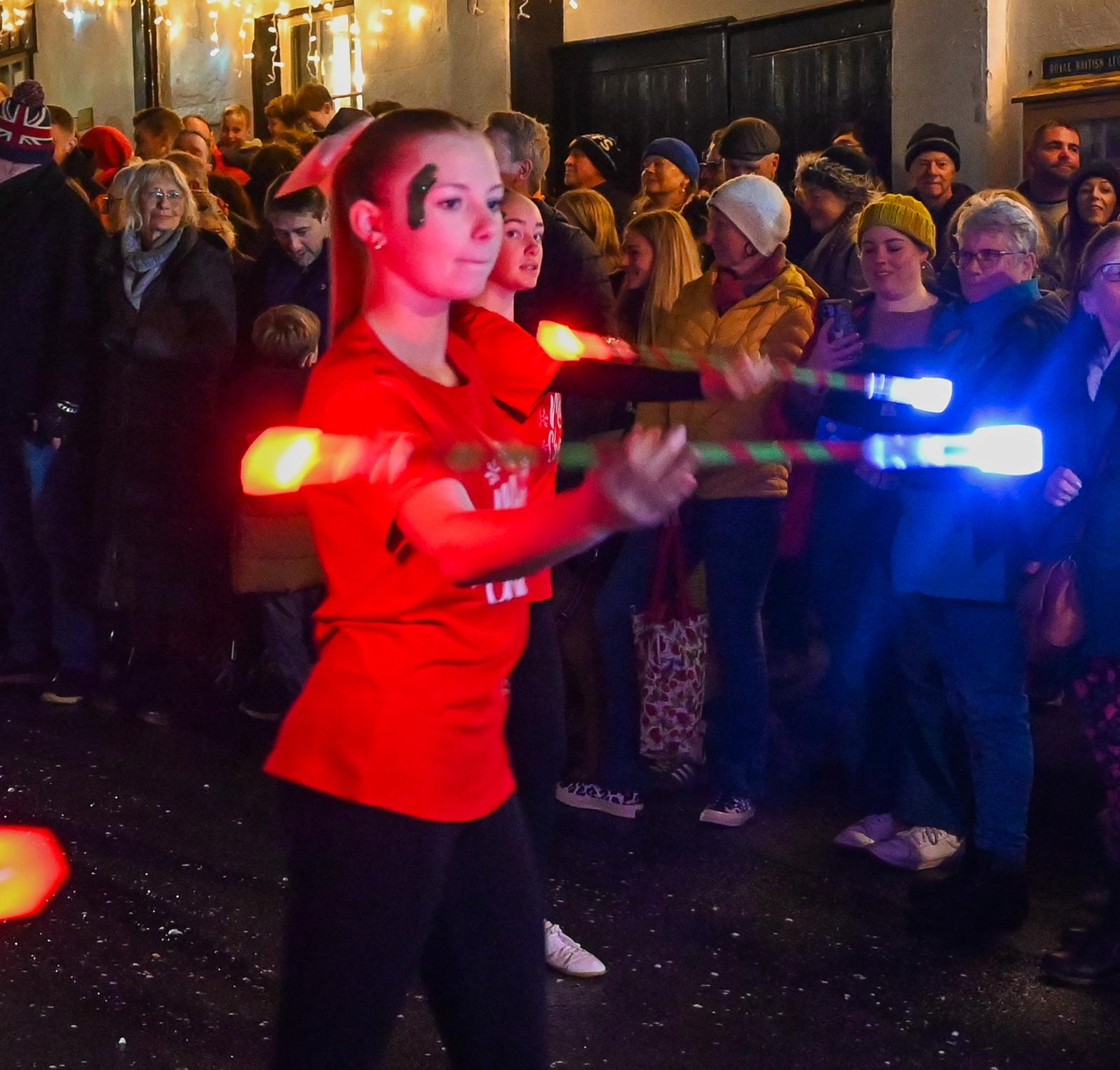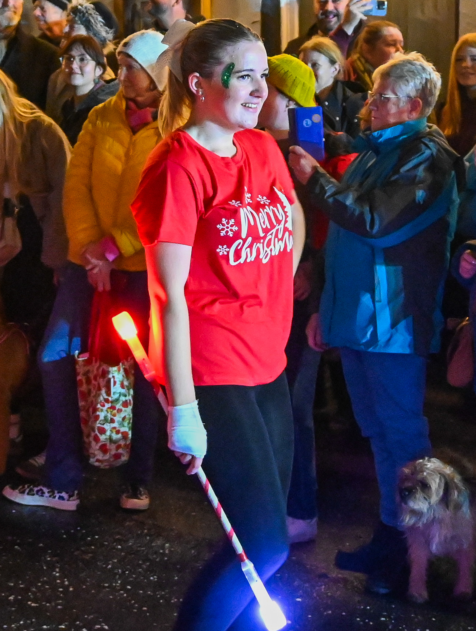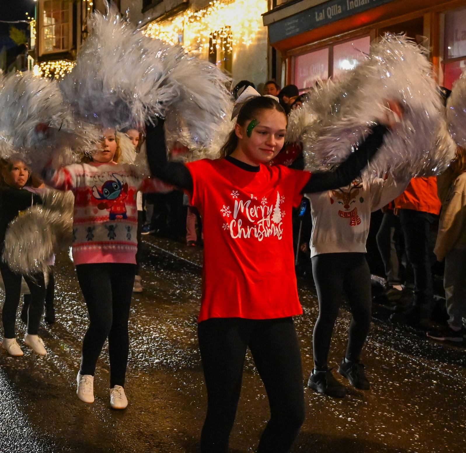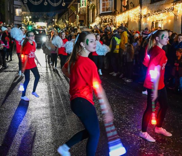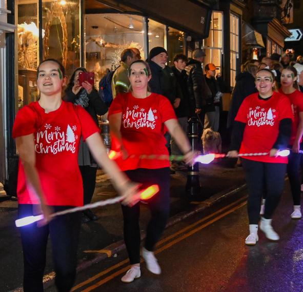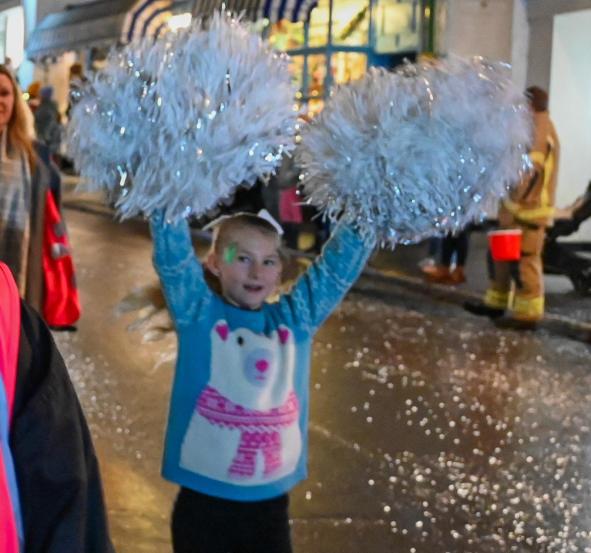At 5pm the brilliant Lyme Regis Majorettes led the switch-on parade with an energetic routine, followed by Santa on his sleigh, who arrived to begin the official countdown. The children’s lantern procession followed behind.
