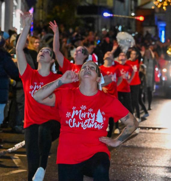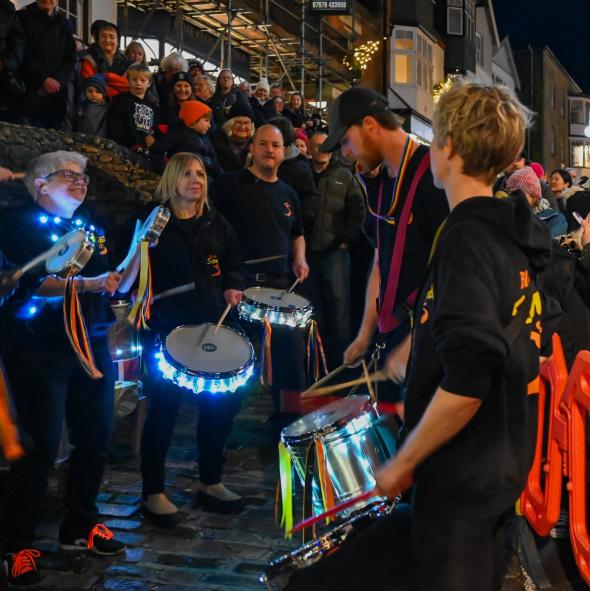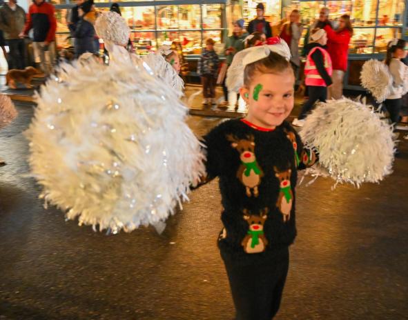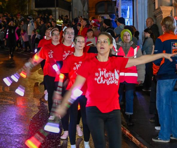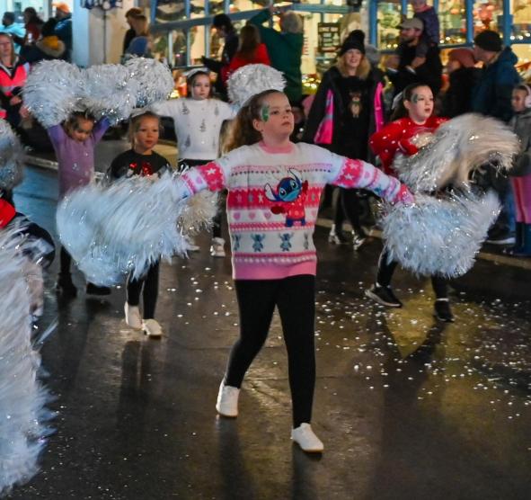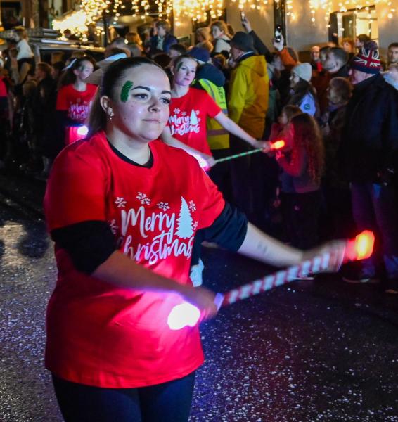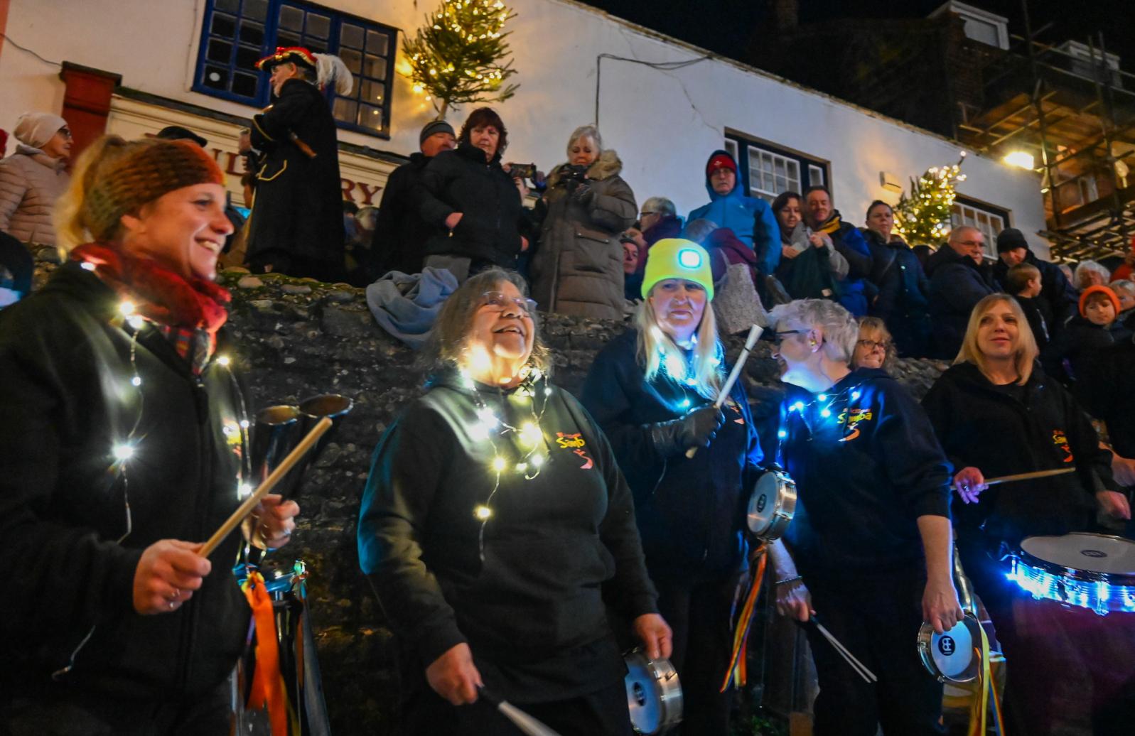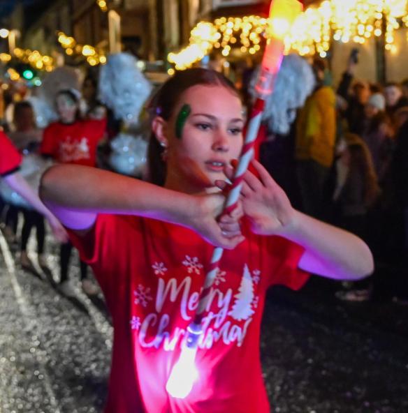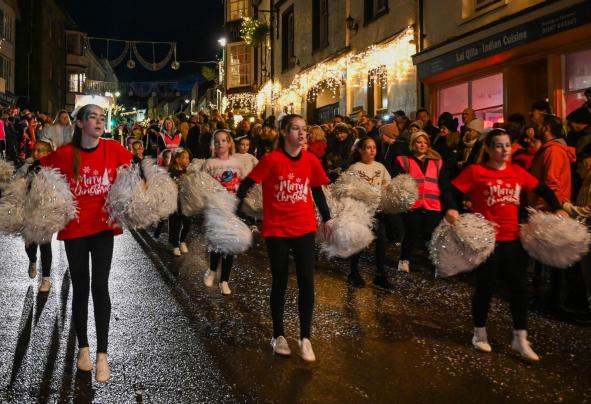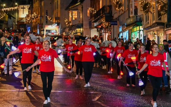At 5pm the brilliant Lyme Regis Majorettes led the switch-on parade with an energetic routine, followed by Santa on his sleigh, who arrived to begin the official countdown. The children’s lantern procession followed behind.