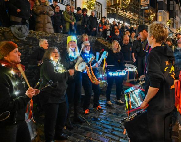 After the switch-on, the fabulous Blackdown Samba entertained the crowd in front of the Christmas tree, and Lyme Morris delighted the audience with their performance.