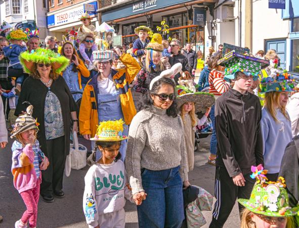 Sun kissed skies and a wonderful display of creativity set the scene for yesterday’s Easter Bonnet Parade in Lyme Regis. The afternoon began at the Baptist Church’s Pine Hall, where 70 entrants across various age groups gathered for judging.