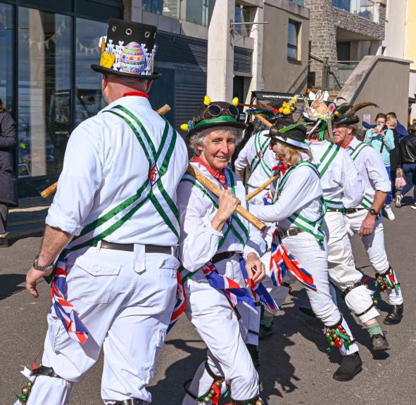At 3pm, the parade set off down Broad Street, led by the brilliant Lyme Regis Majorettes, while Lyme Morris brought up the rear, delighting the crowds.