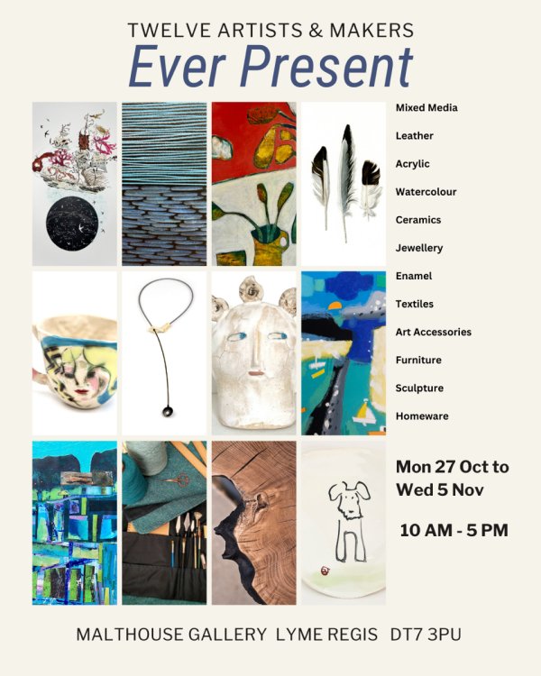 Sharon Campbell AKA Silver and Slate Textiles who lives in Bridport will bring her oil cloth art wraps and accessories, perfect gifts for aspiring and active artists.