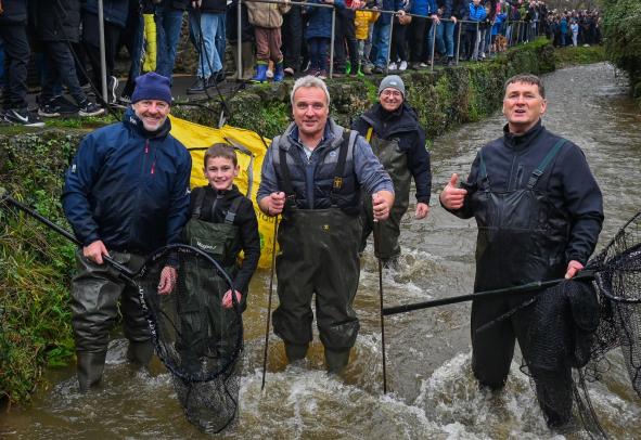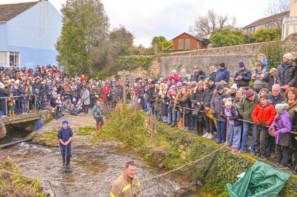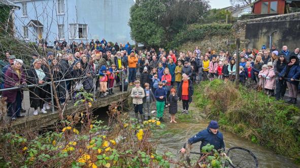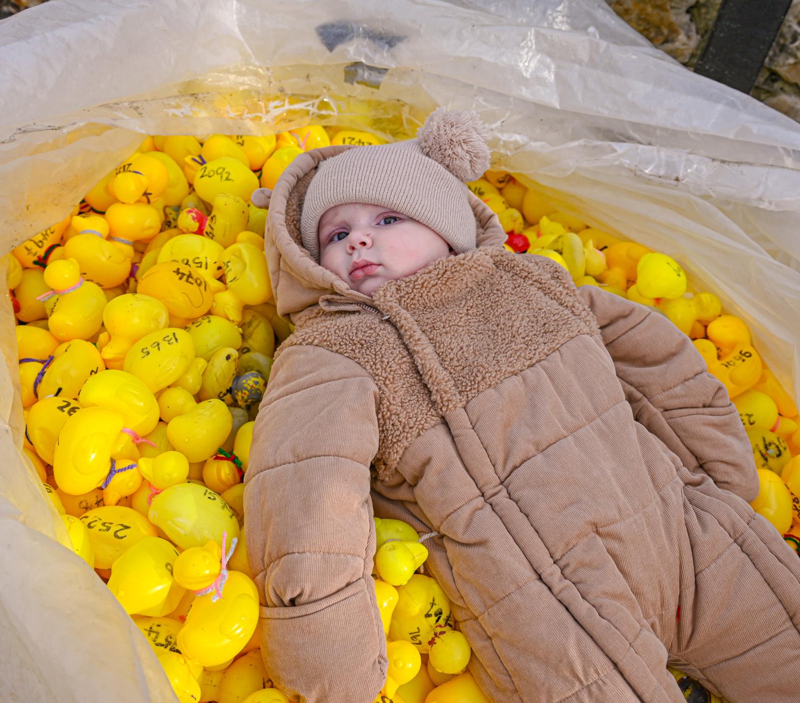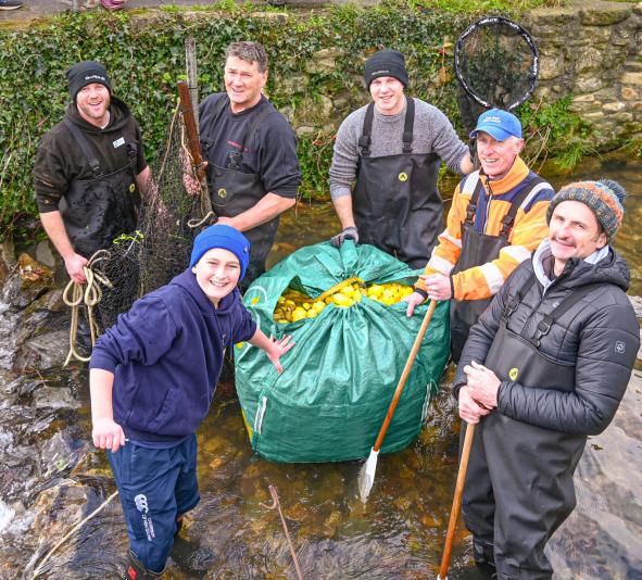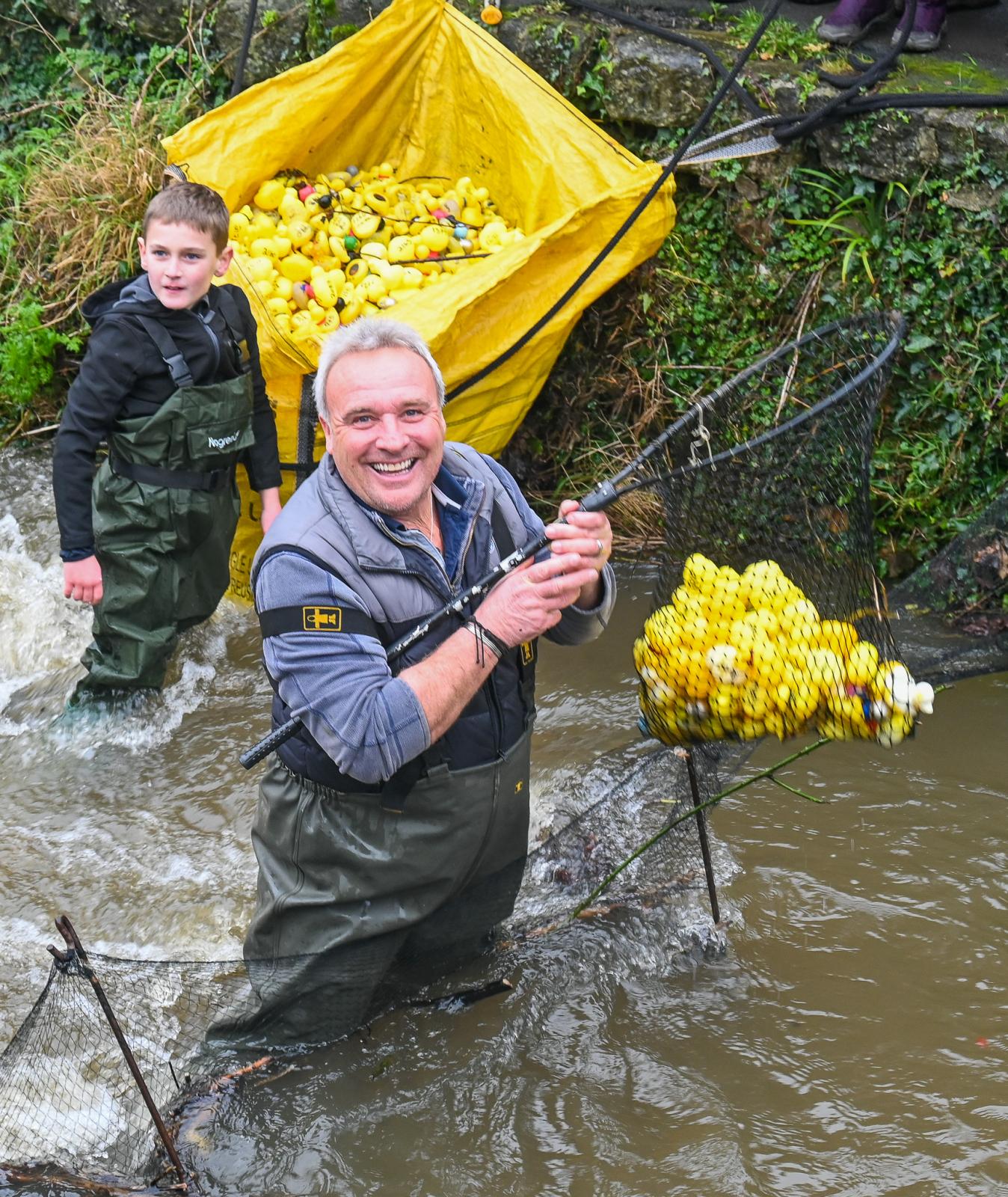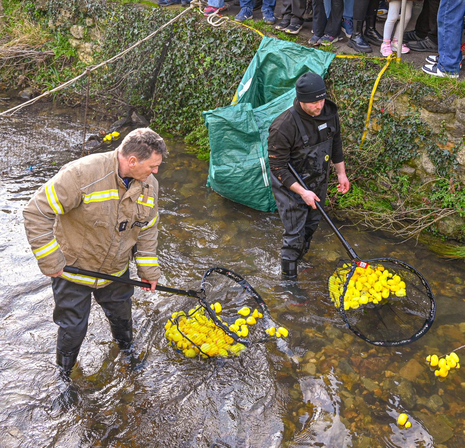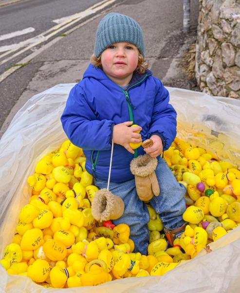 Everyone goes a bit quackers at midday on New Year’s Day as hundreds of individually numbered bright yellow toy ducks are released into the River Lym at Woodmead Road bridge where they hurtle downstream in a mad paddle towards the finish line at Jordan Flats.