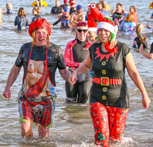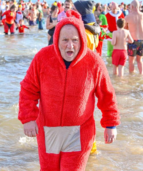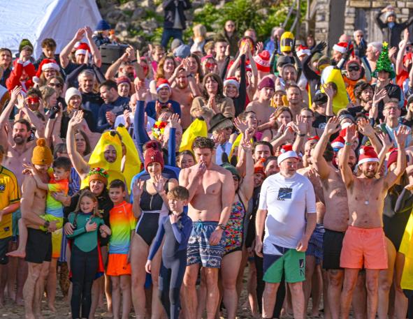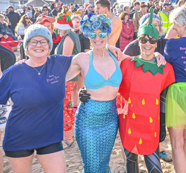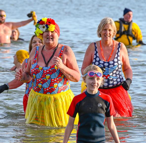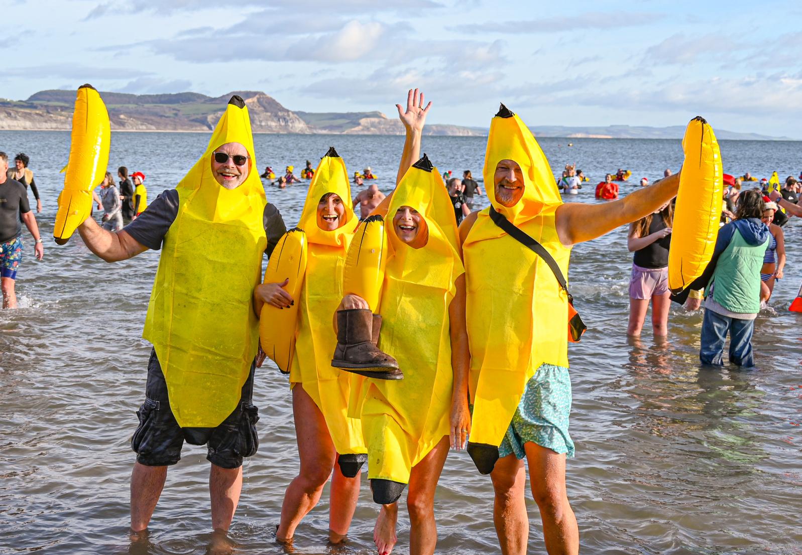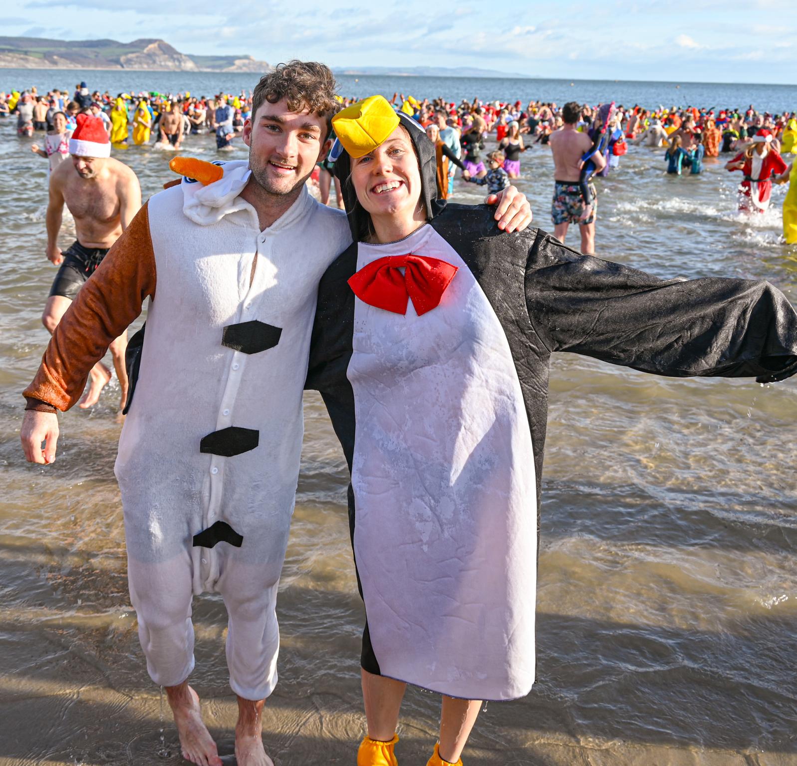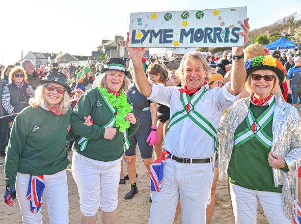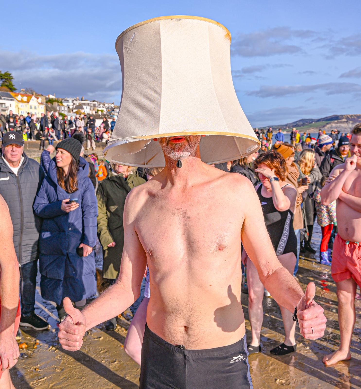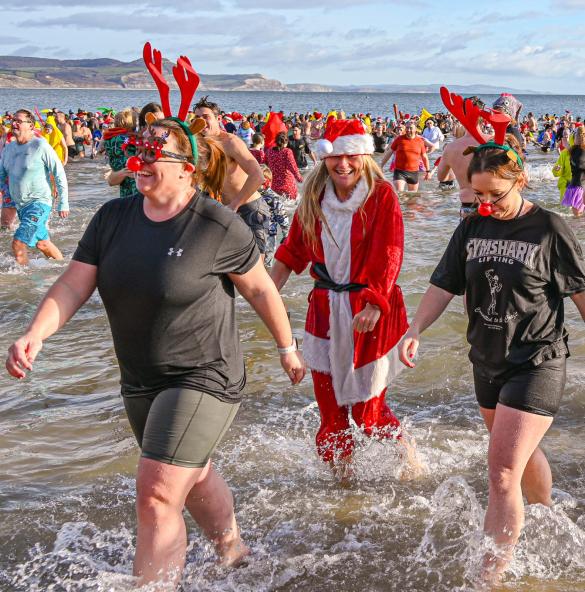 Around 1,500 hardy participants braved the chilly waters for the Lyme Lunge today, the New Year’s Day fancy dress sea dip organised by the Rotary Club of Lyme Regis. Thousands of spectators lined the seafront and filled the gardens to enjoy the colourful spectacle.