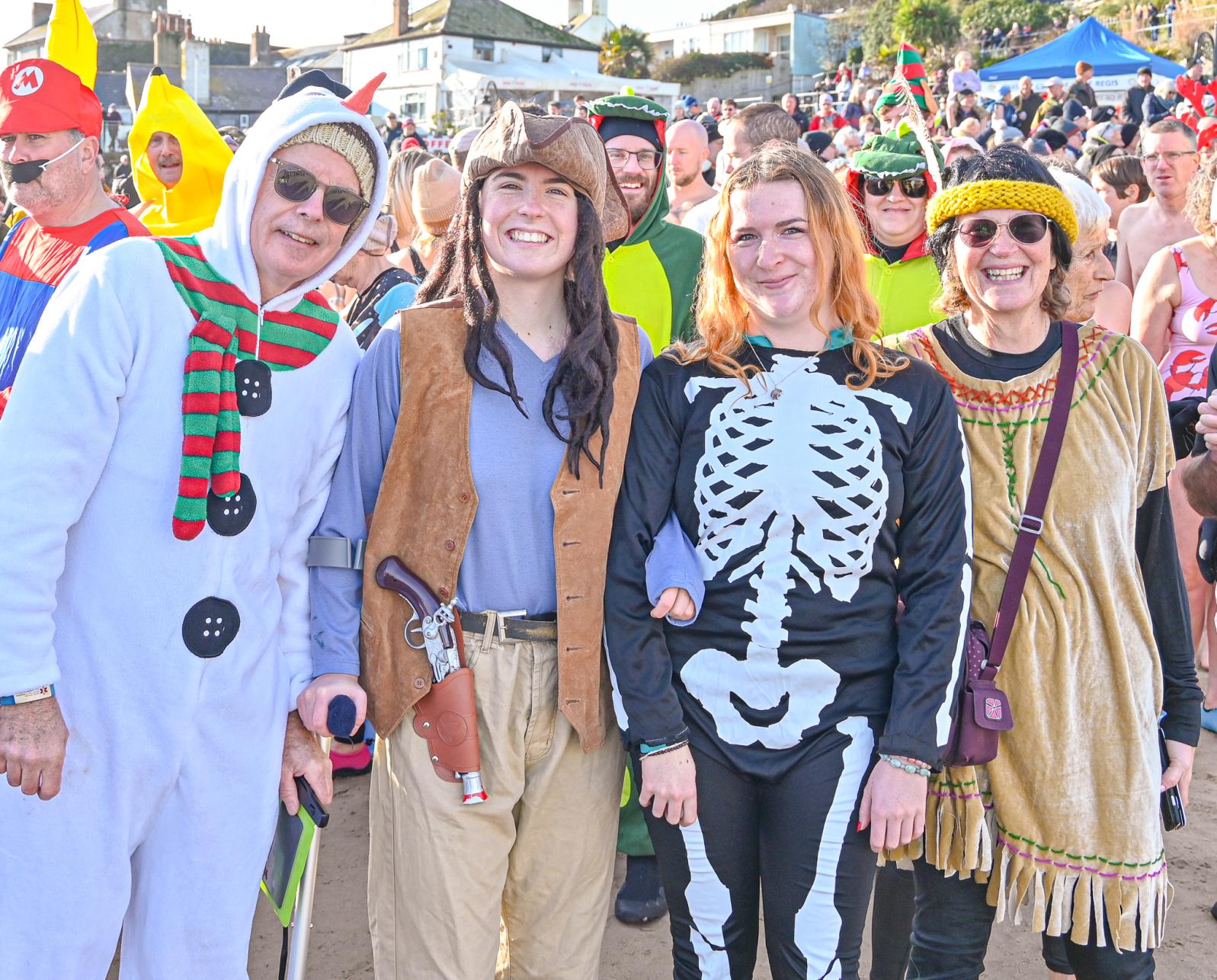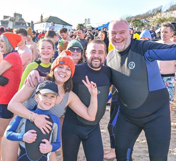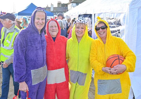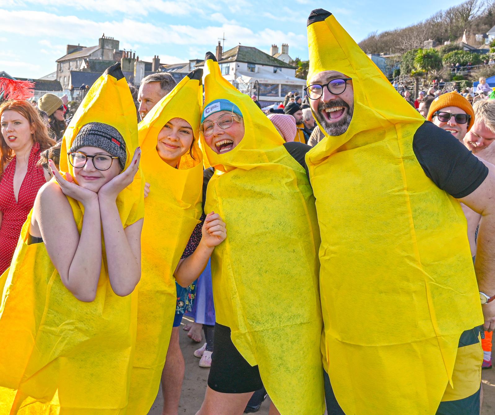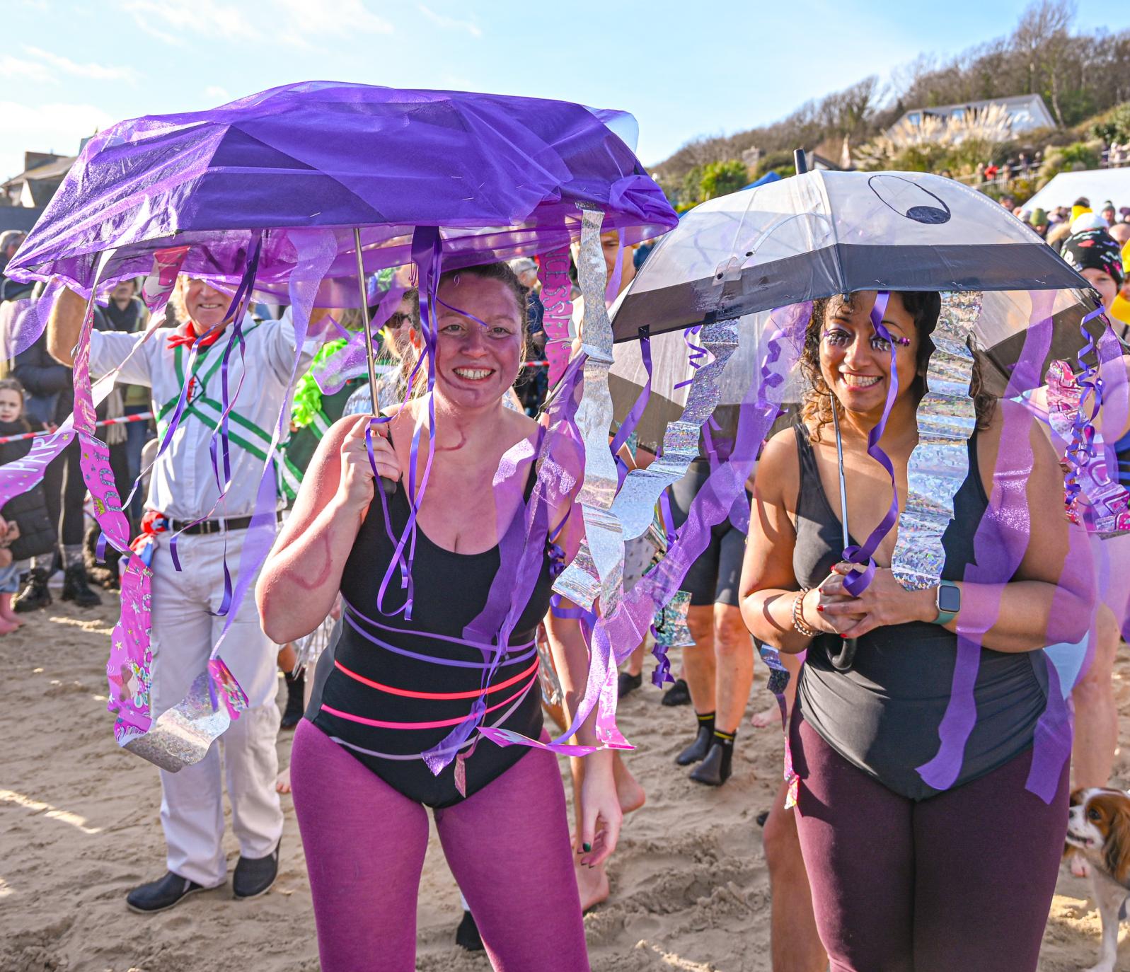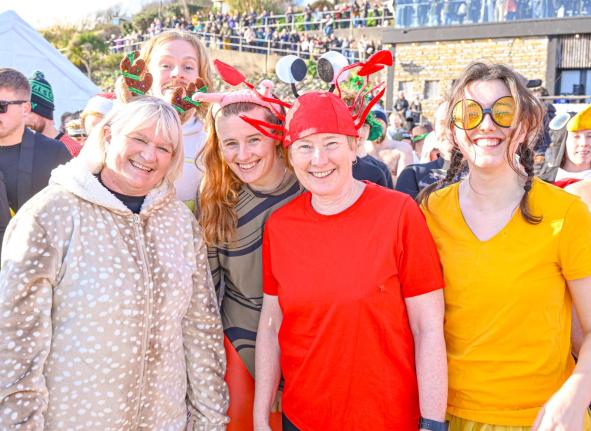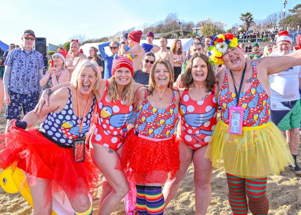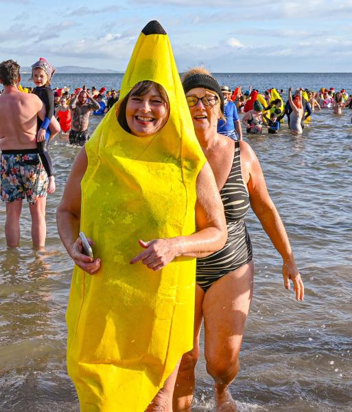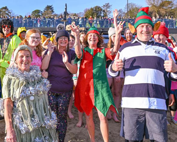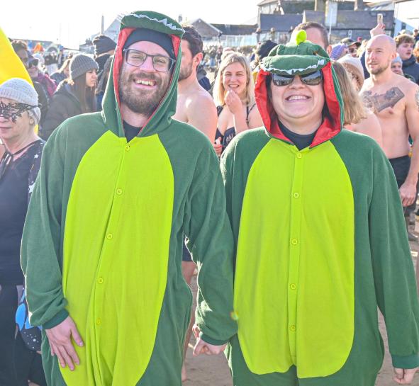 Around 1,500 hardy participants braved the chilly waters for the Lyme Lunge today, the New Year’s Day fancy dress sea dip organised by the Rotary Club of Lyme Regis. Thousands of spectators lined the seafront and filled the gardens to enjoy the colourful spectacle.