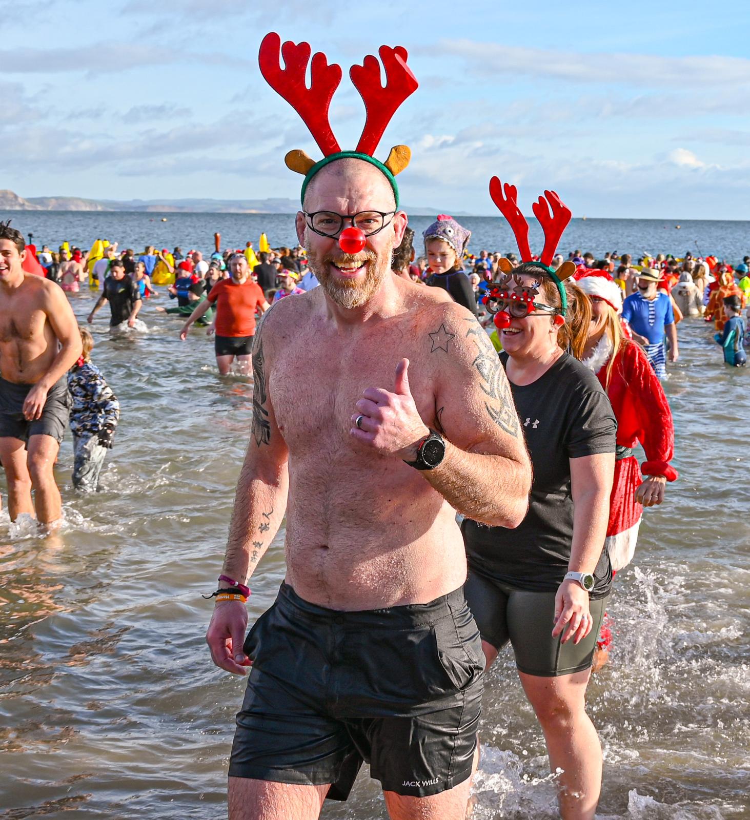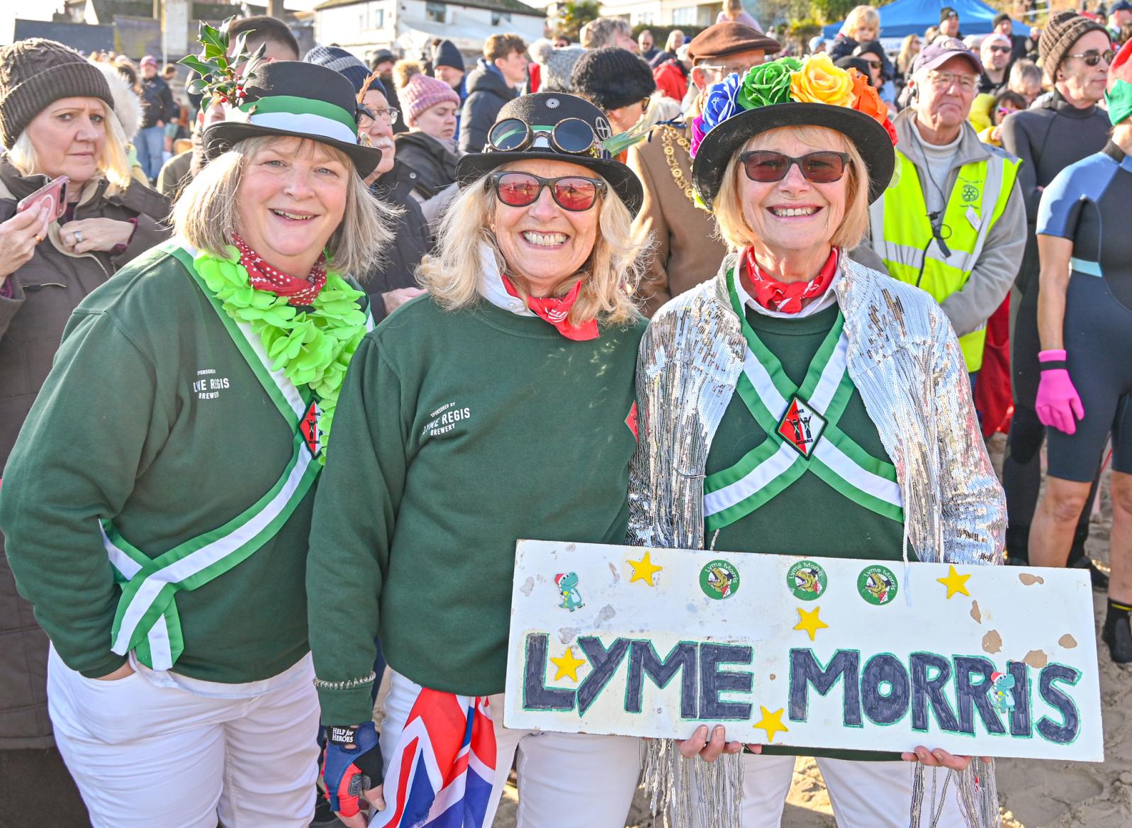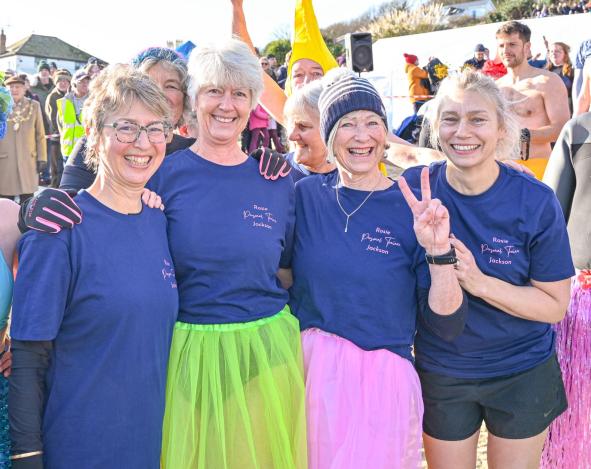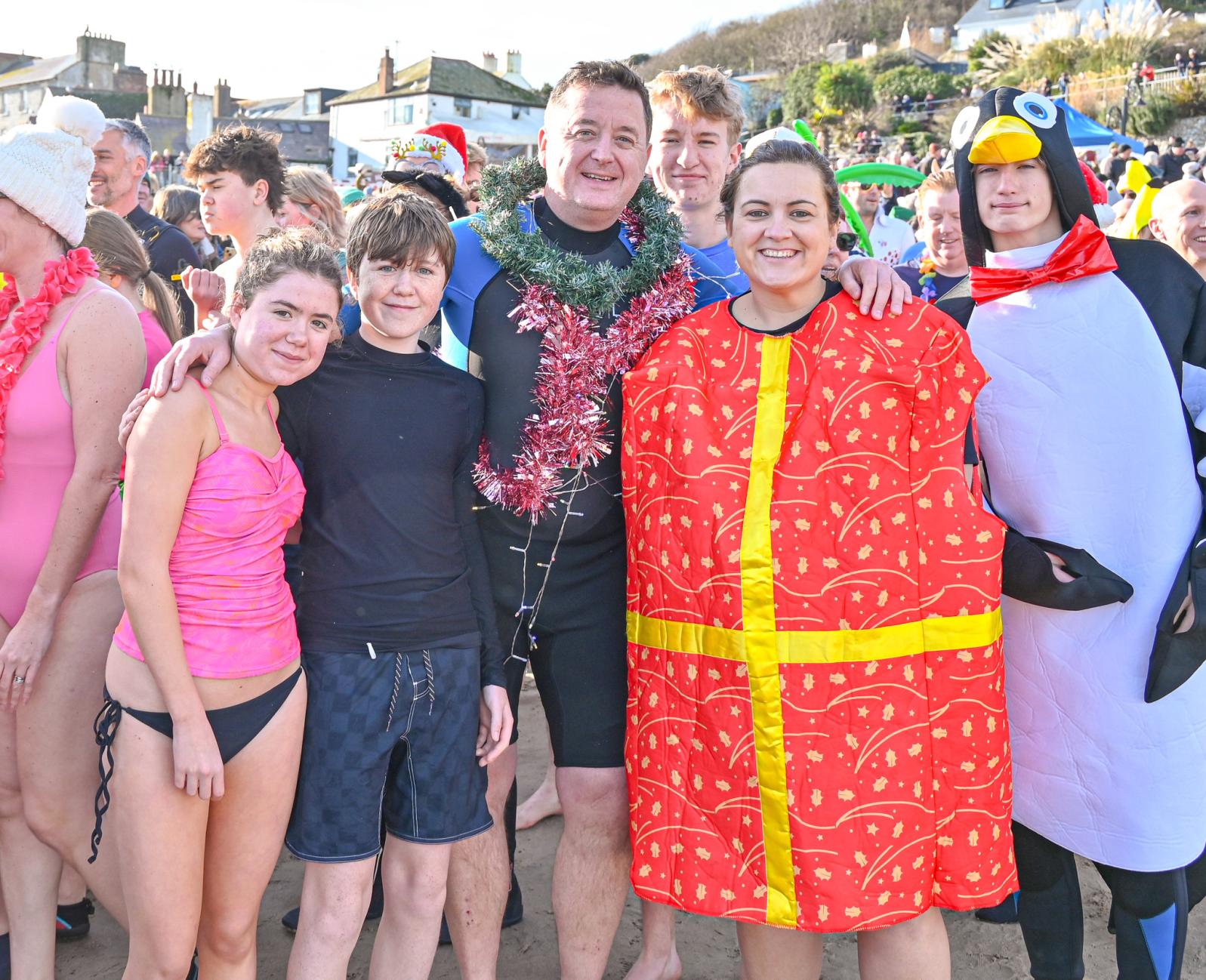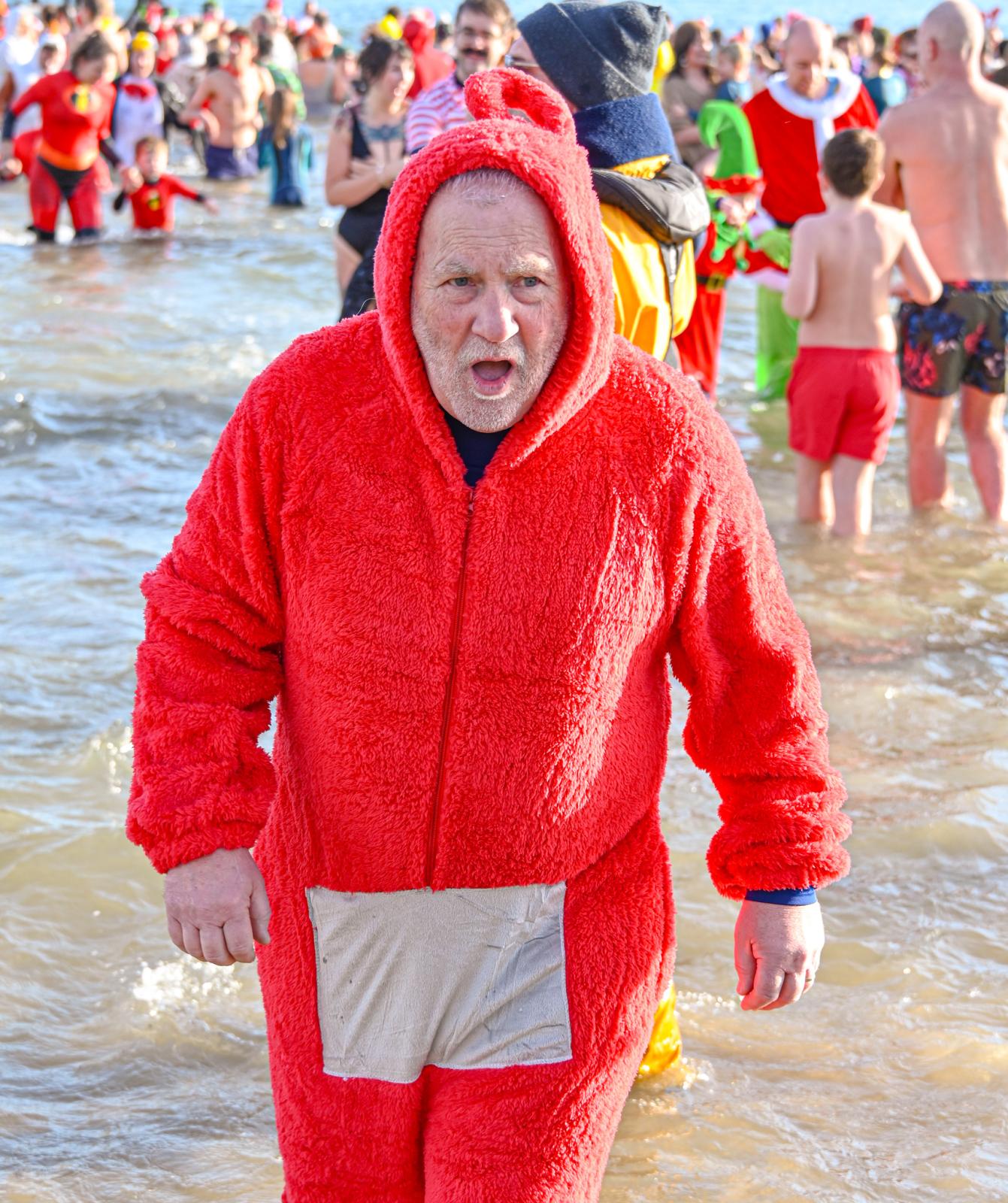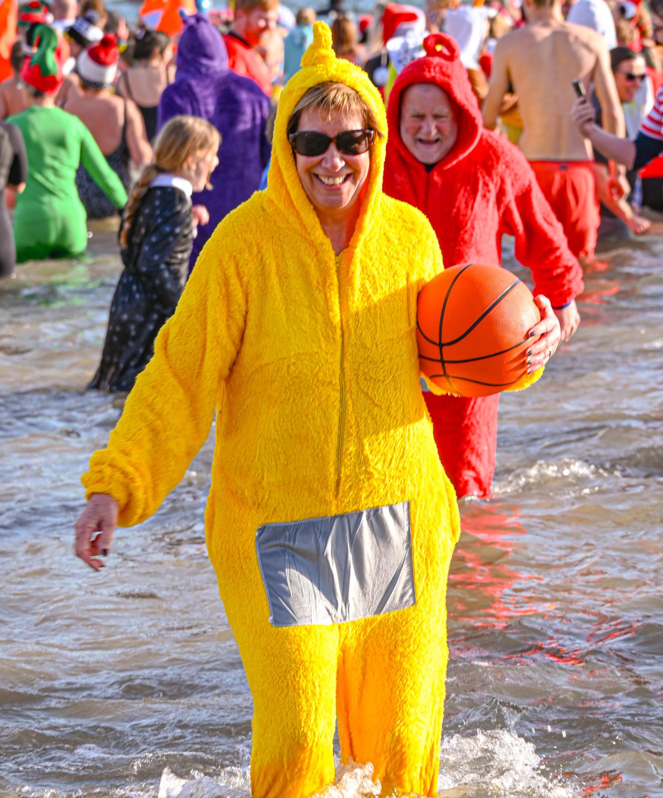 Around 1,500 hardy participants braved the chilly waters for the Lyme Lunge today, the New Year’s Day fancy dress sea dip organised by the Rotary Club of Lyme Regis. Thousands of spectators lined the seafront and filled the gardens to enjoy the colourful spectacle.