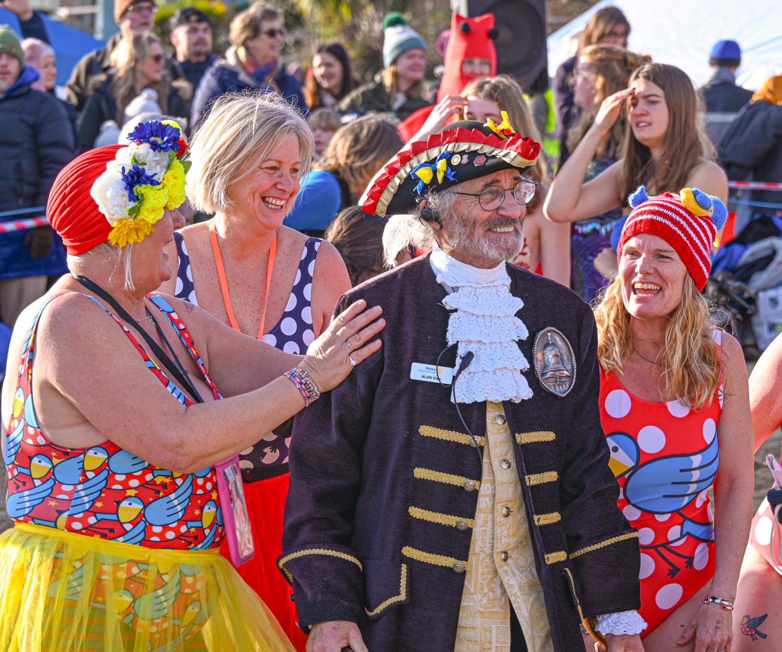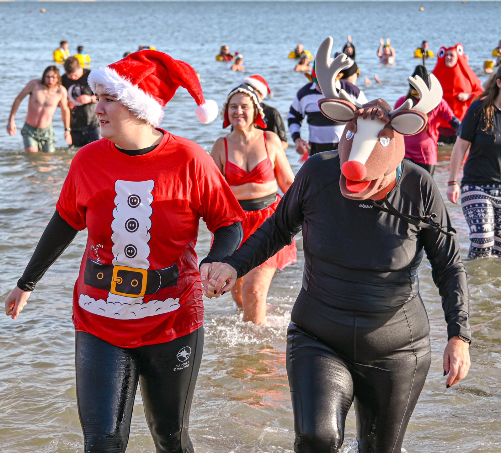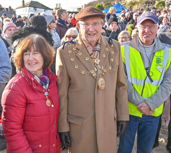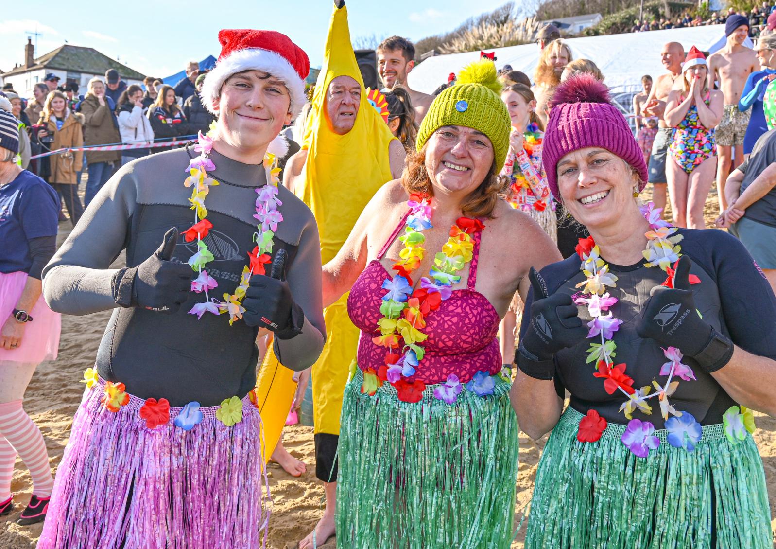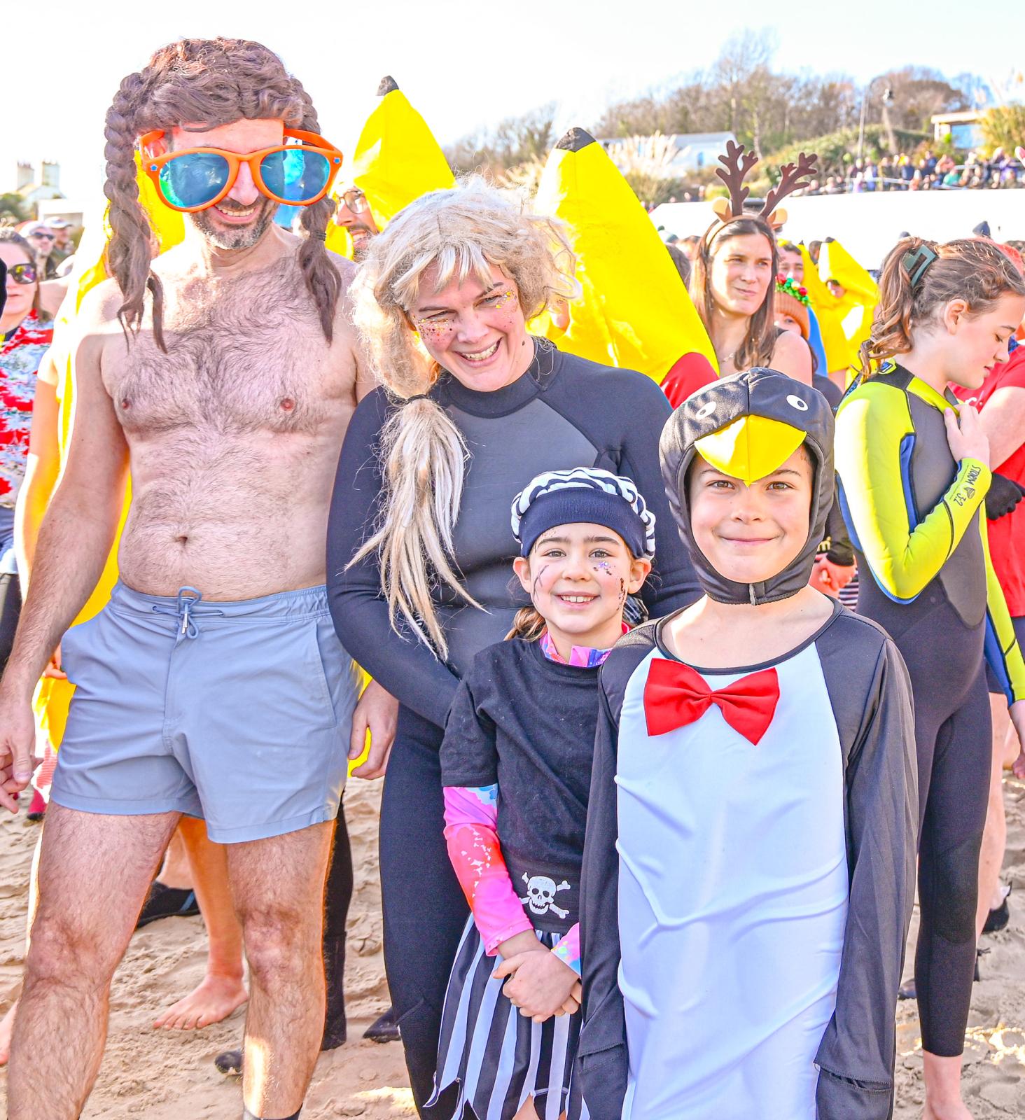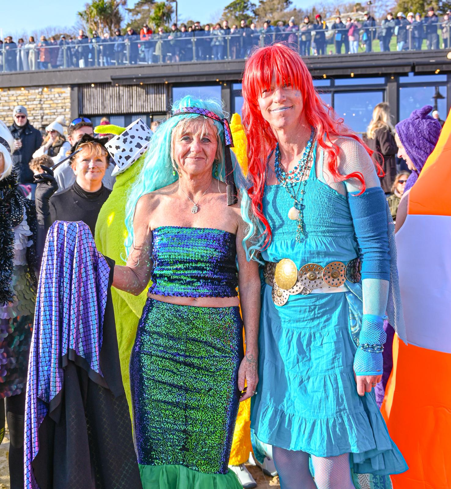 Around 1,500 hardy participants braved the chilly waters for the Lyme Lunge today, the New Year’s Day fancy dress sea dip organised by the Rotary Club of Lyme Regis. Thousands of spectators lined the seafront and filled the gardens to enjoy the colourful spectacle.