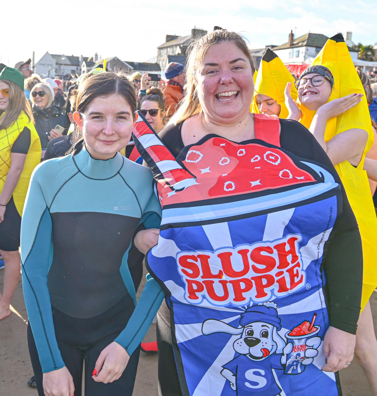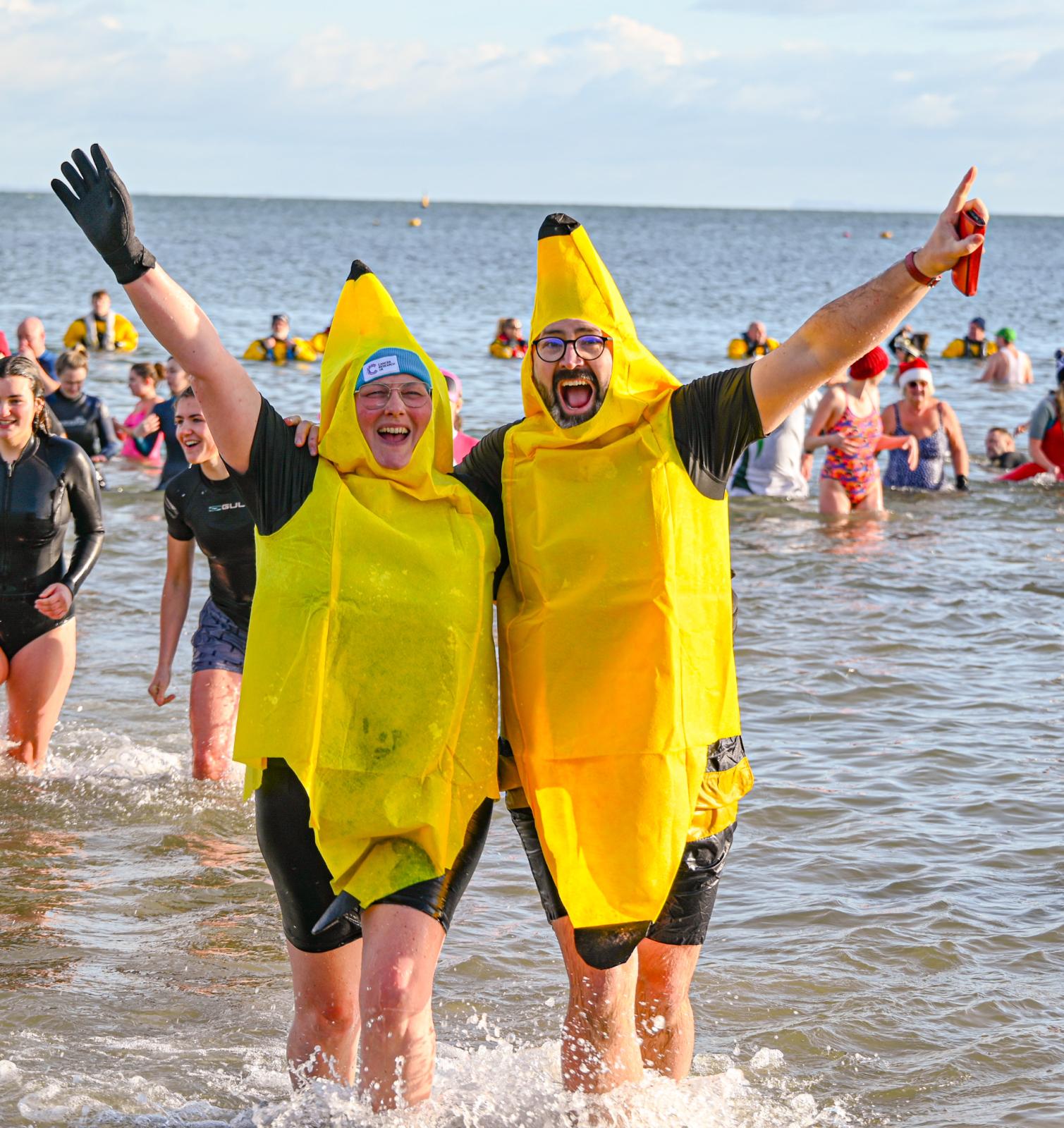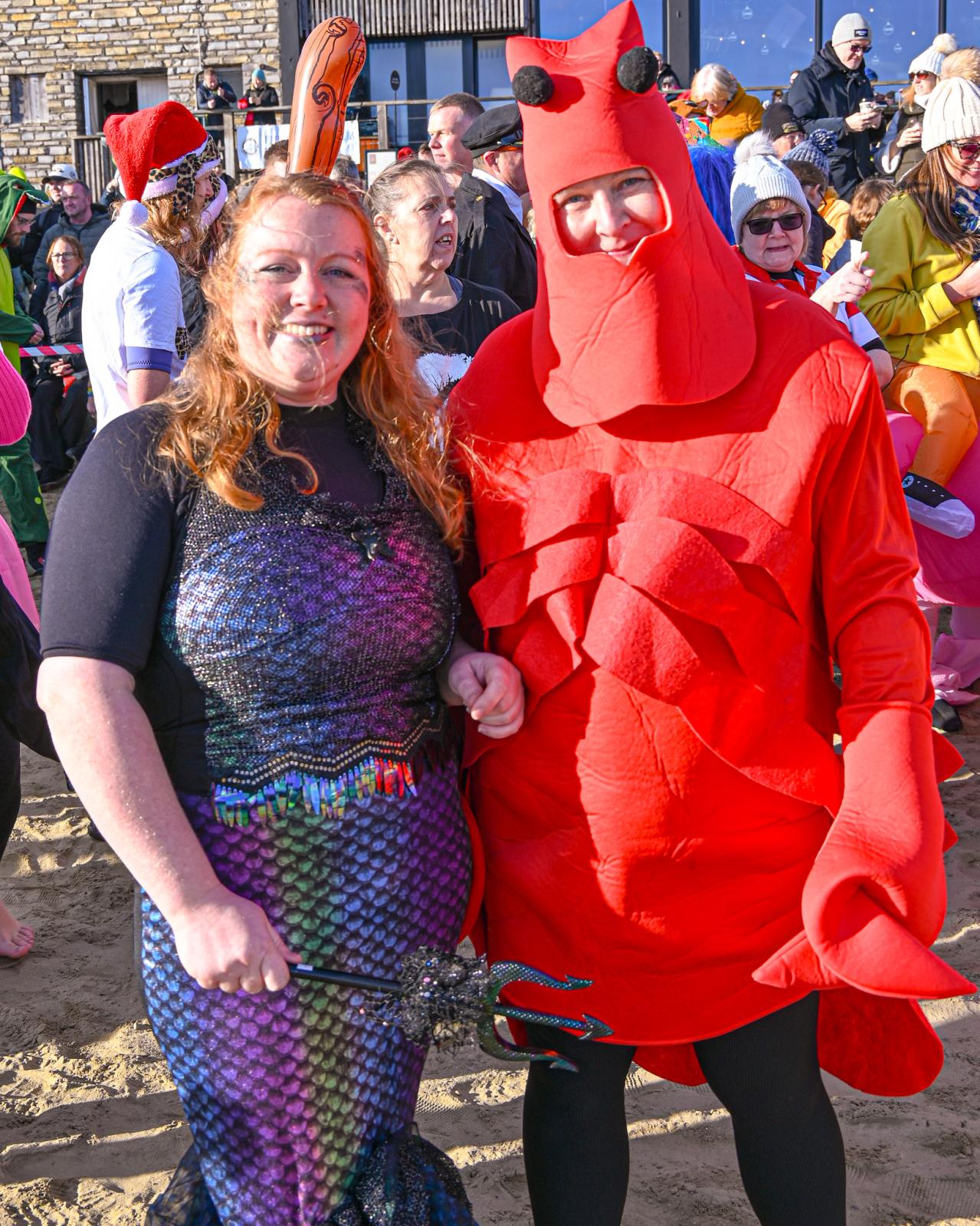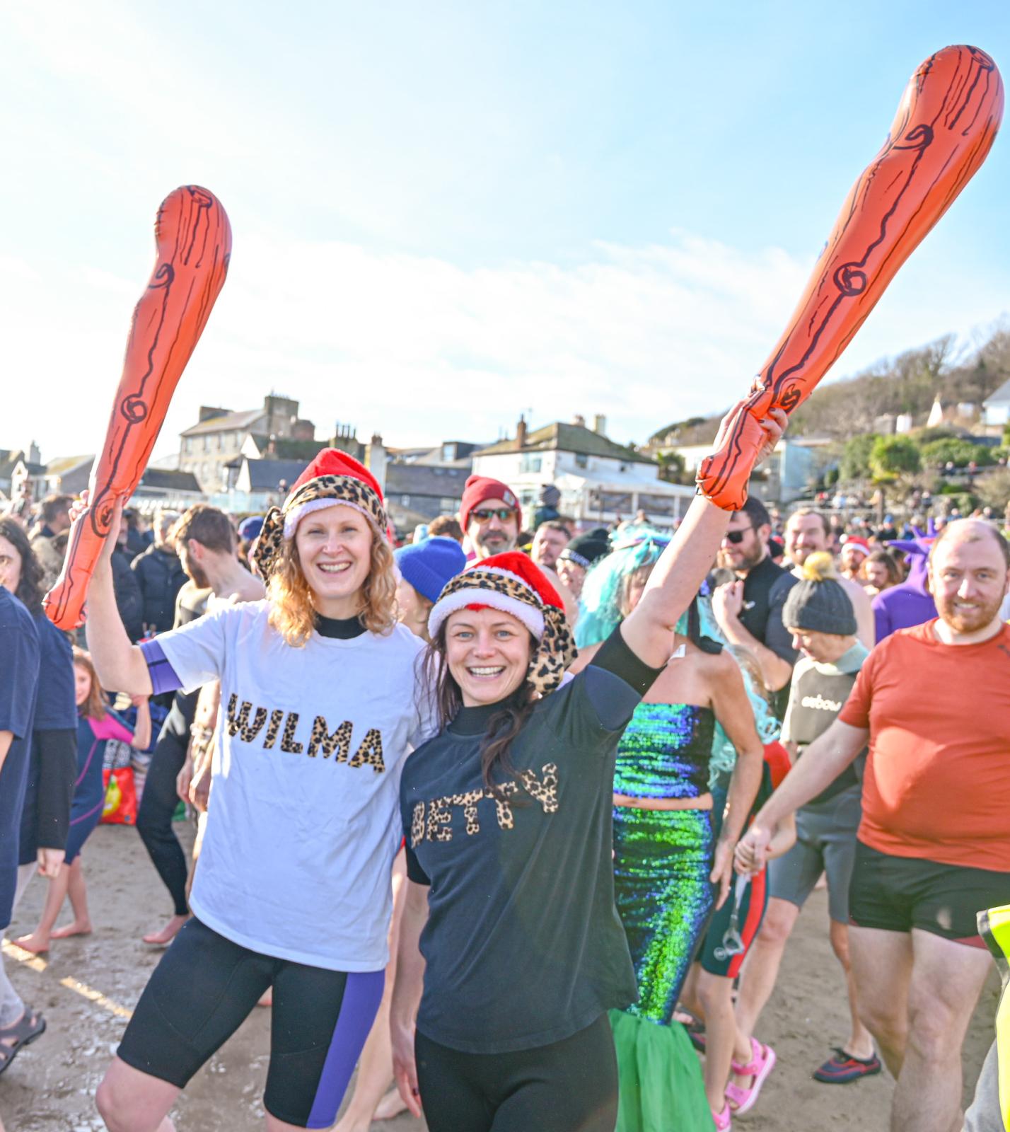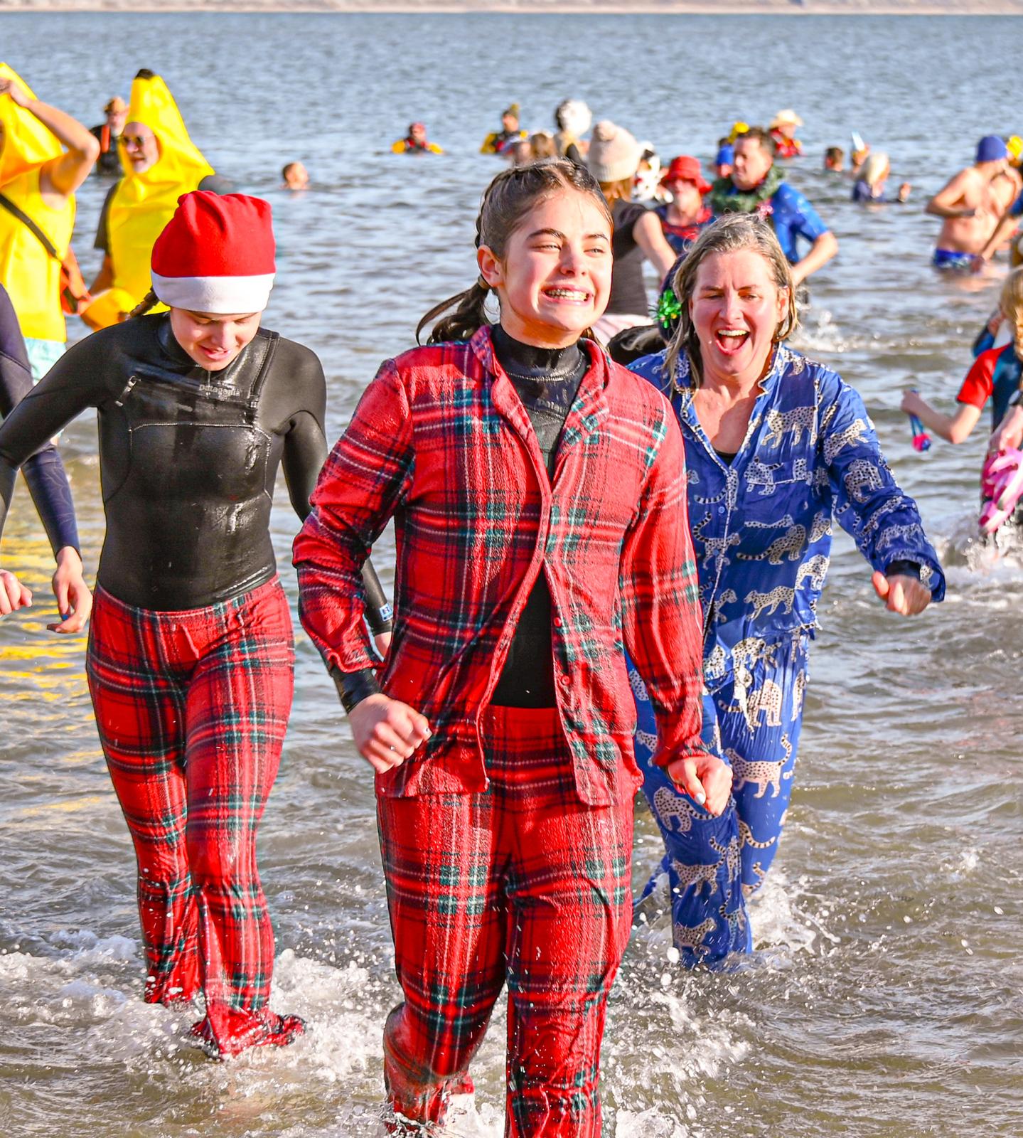 Around 1,500 hardy participants braved the chilly waters for the Lyme Lunge today, the New Year’s Day fancy dress sea dip organised by the Rotary Club of Lyme Regis. Thousands of spectators lined the seafront and filled the gardens to enjoy the colourful spectacle.