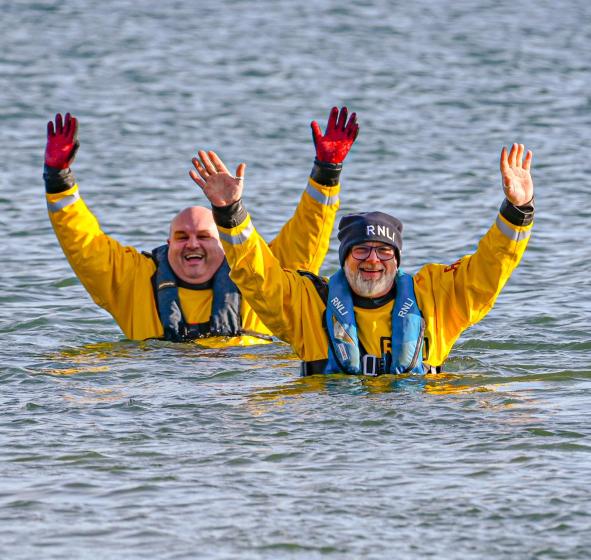 Members of RNLI Lyme Regis were in the water throughout the event to ensure it passed safely.