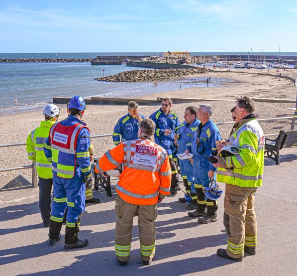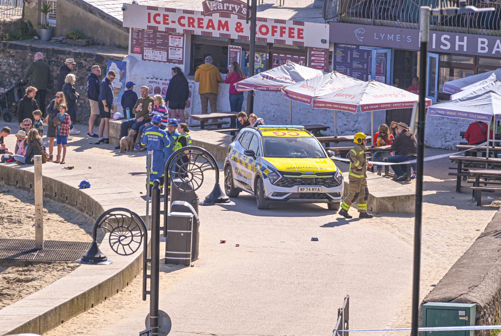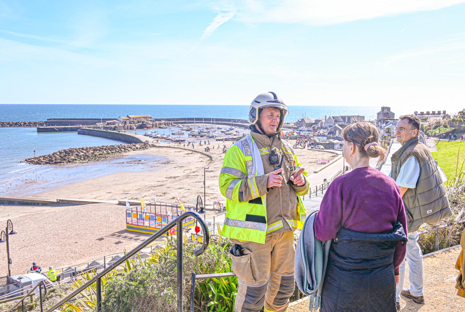 HM Coastguard, Lyme Regis Fire Crew, the Police and Lyme Regis Town Council were in attendance to ensure public safety with an exclusion zone encompassing part of the seafront and gardens.