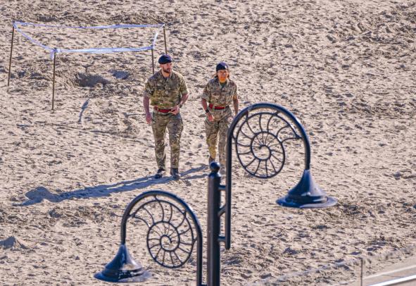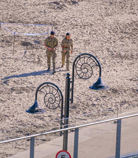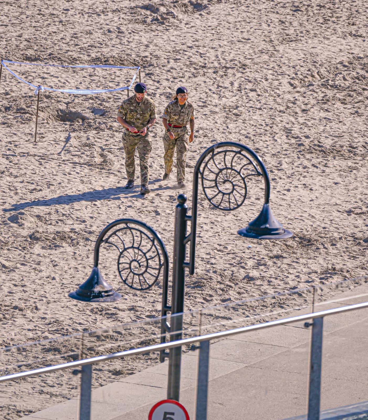 The sandy beach at Lyme Regis was cordoned off this afternoon after suspected ordnance was discovered and the bomb squad were called in.