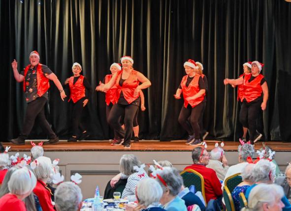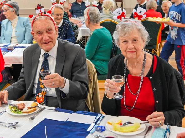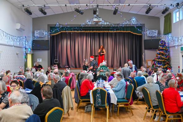 .More than 100 local residents enjoyed a wonderful festive afternoon at the Lyme Regis Over 70s Christmas Lunch today at Woodmead Halls.