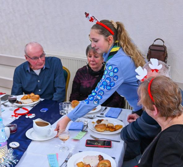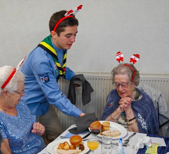 Organised by the volunteers of the Lyme Regis Over 70s Christmas Lunch Fund Committee who were brilliantly supported by members of Powder Monkeys Explorer Sea Scout Unit, guests were treated to a superb Christmas meal thoughtfully prepared by Emma Blackmore and Sammie Collings.