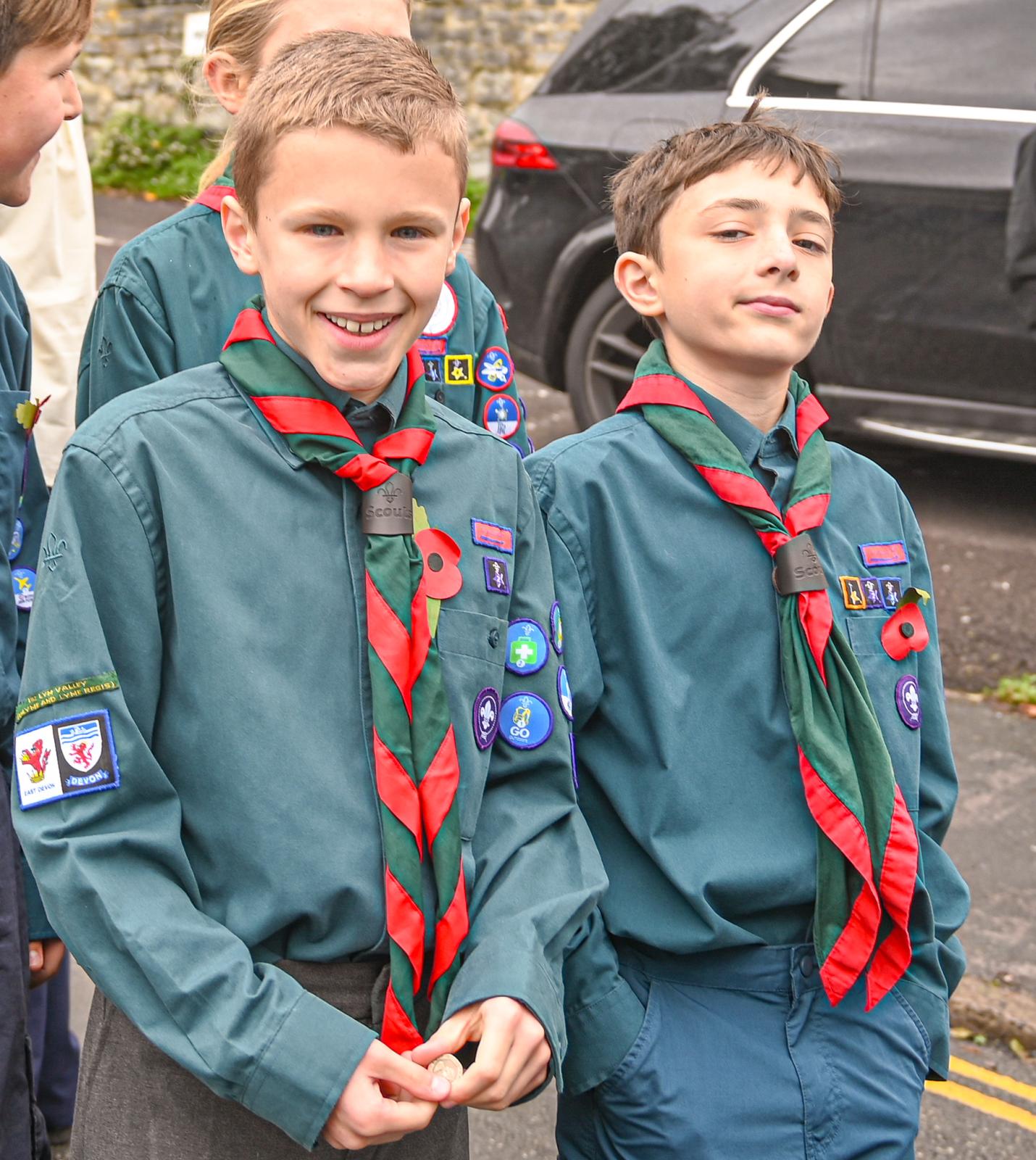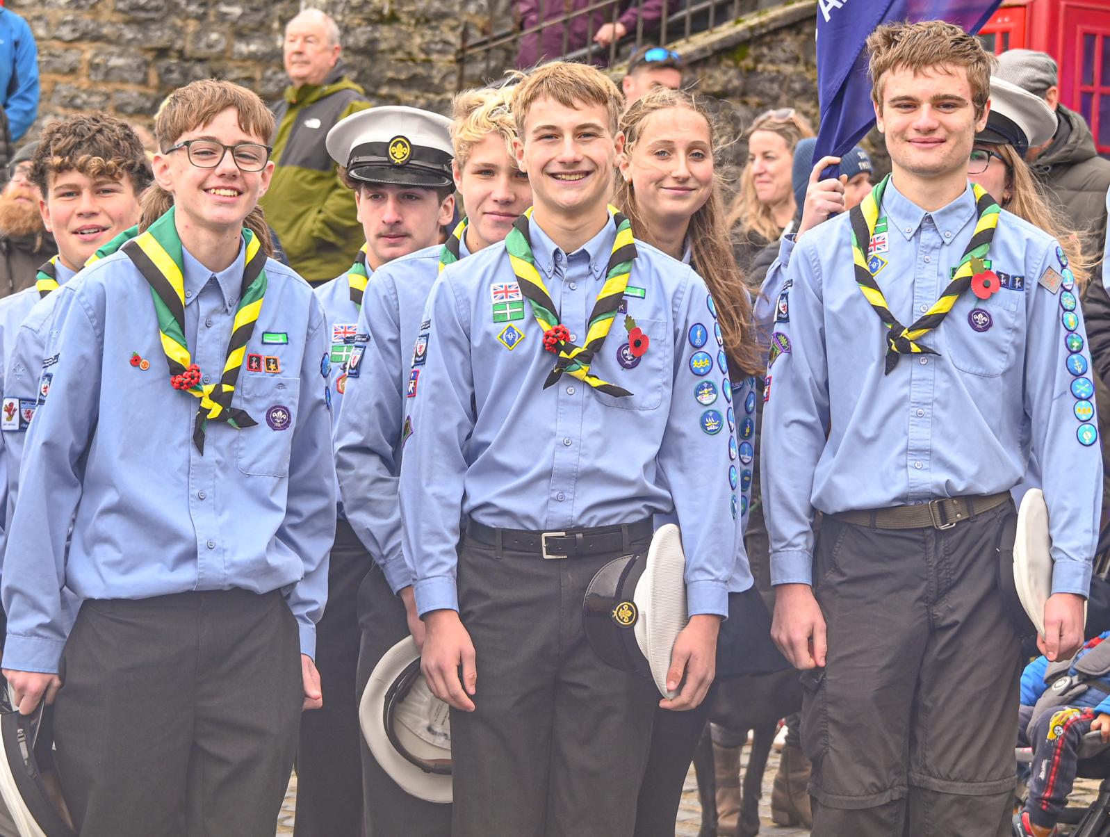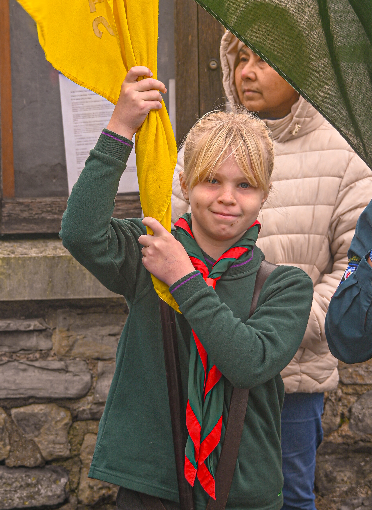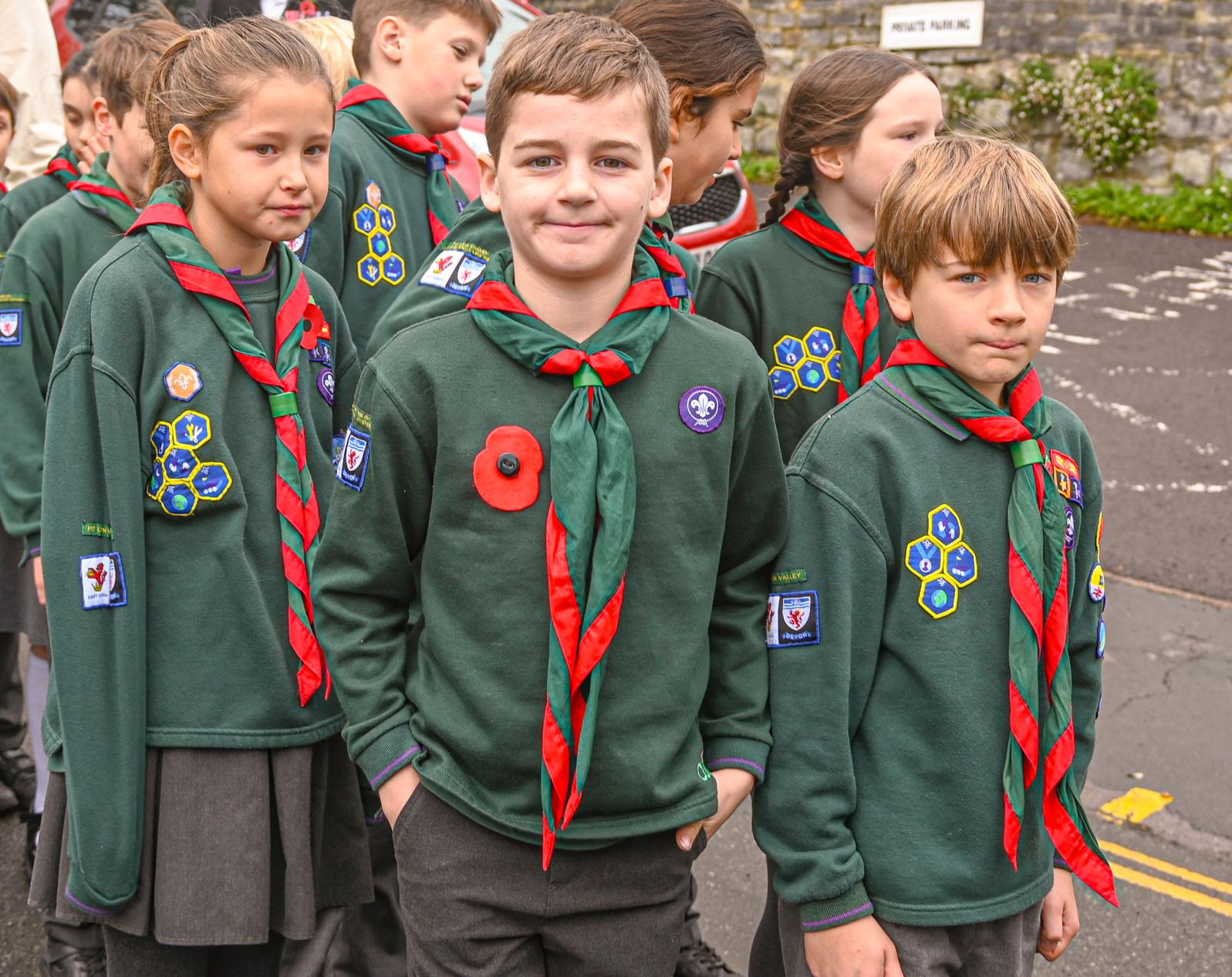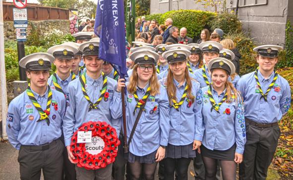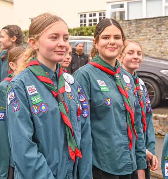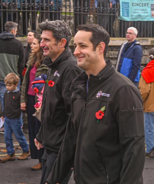 A parade involving members of the Royal British Legion, veterans, civic party, Lyme Regis RNLI, Lyme Regis Coastguards, Lyme Regis Fire Crew, Rotary Club of Lyme Regis, the Powder Monkeys Explorer Sea Scout Unit, Lyme Regis Majorettes, and Lyme Regis Pantomime Society made its way through Broad Street, Bridge Street, and Church Street towards St Michael’s Parish Church, where a special service of remembrance was held.
