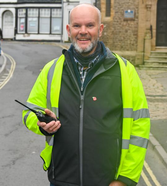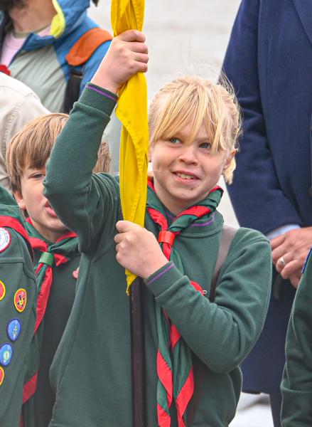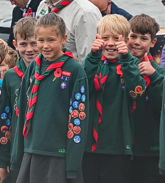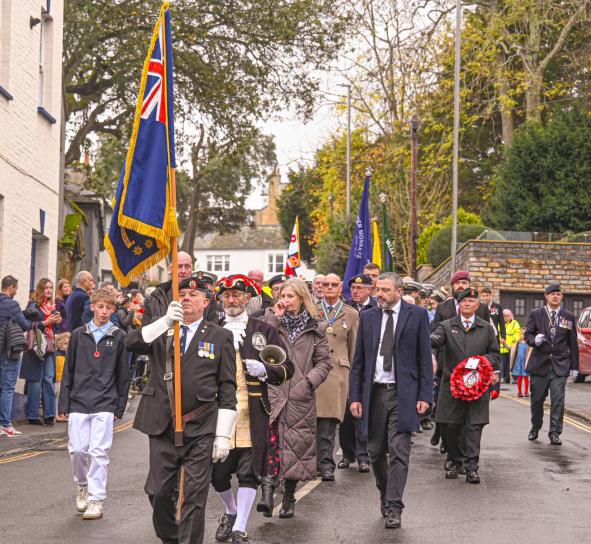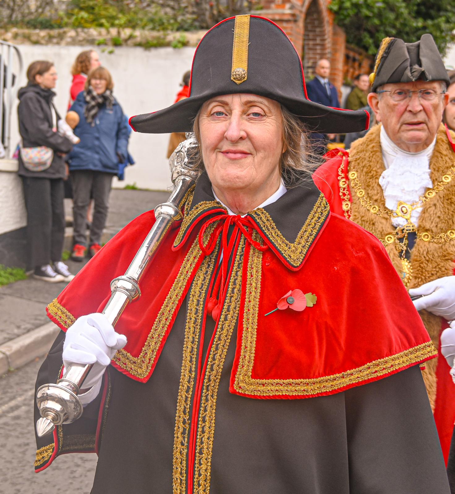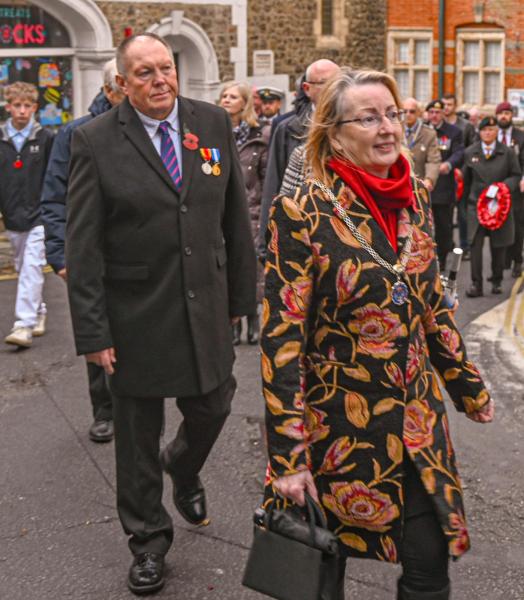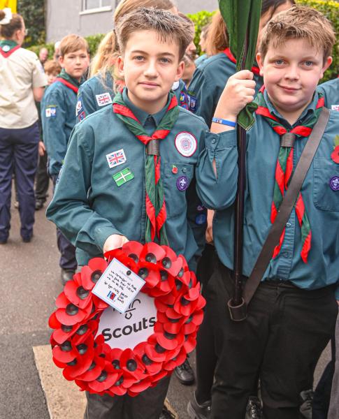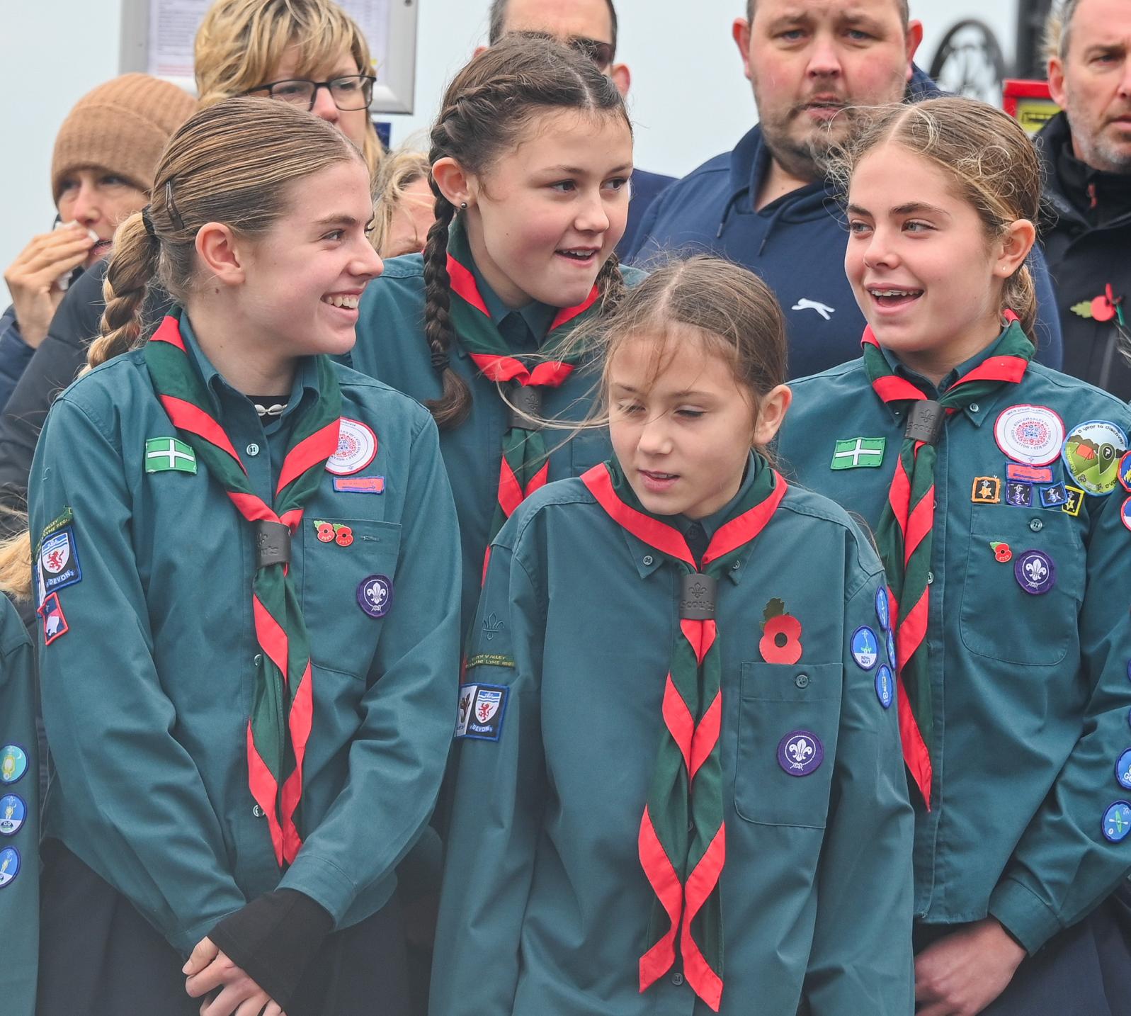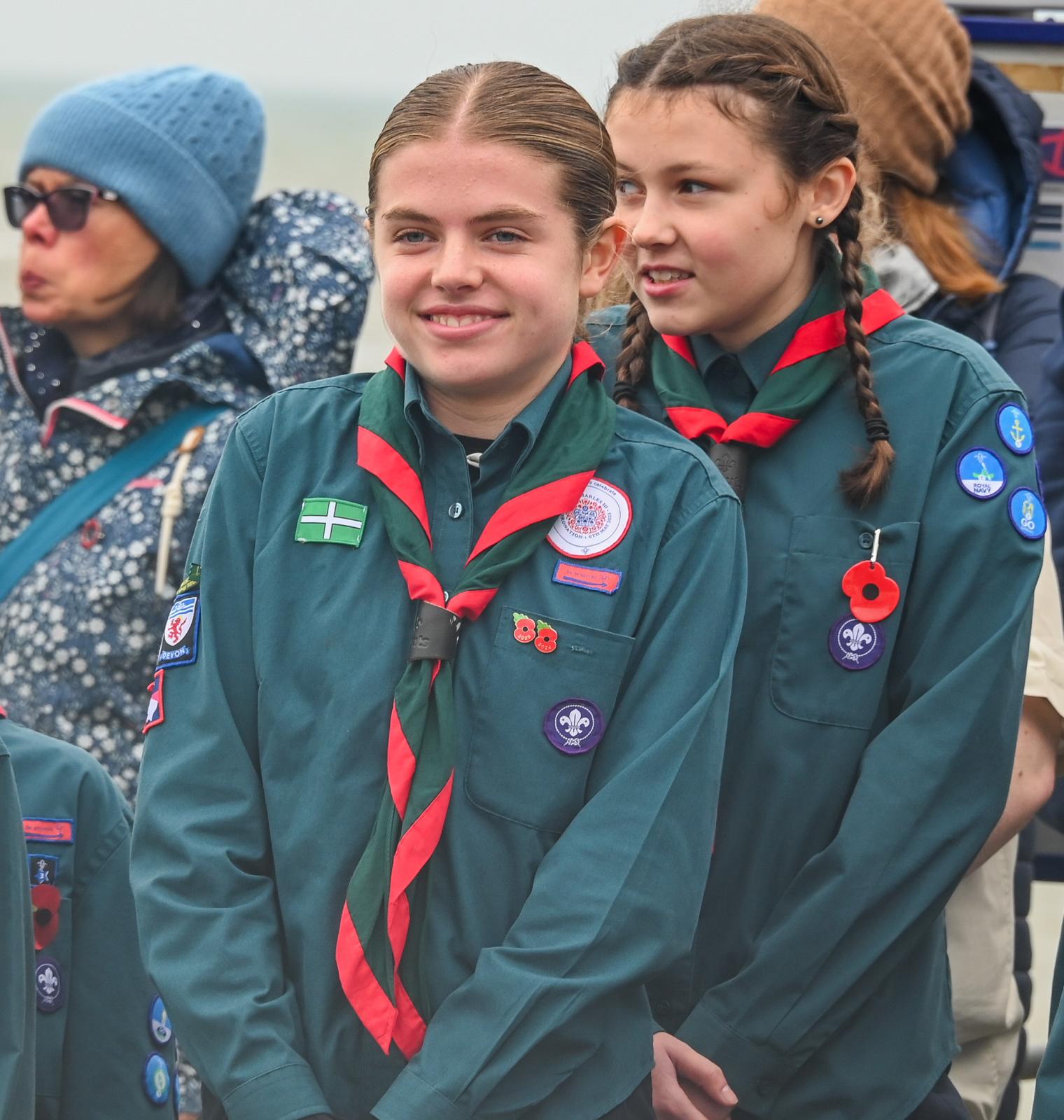 A parade involving members of the Royal British Legion, veterans, civic party, Lyme Regis RNLI, Lyme Regis Coastguards, Lyme Regis Fire Crew, Rotary Club of Lyme Regis, the Powder Monkeys Explorer Sea Scout Unit, Lyme Regis Majorettes, and Lyme Regis Pantomime Society made its way through Broad Street, Bridge Street, and Church Street towards St Michael’s Parish Church, where a special service of remembrance was held.