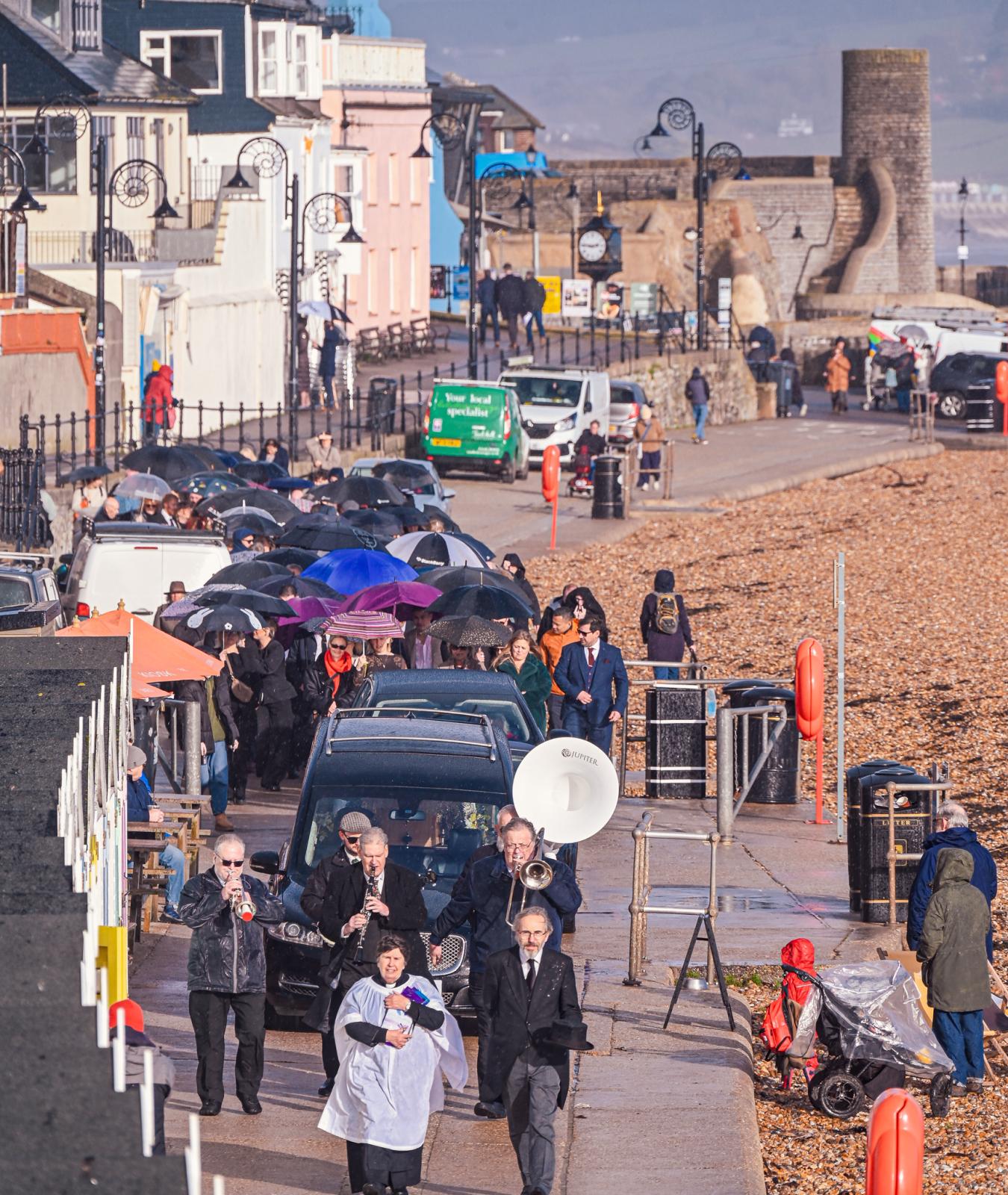 A packed service was held at St Michael’s Church before the hearse led mourners along the seafront to The Royal Standard. As the cortege made its way along the seafront, a beautiful rainbow appeared — a truly poignant moment.