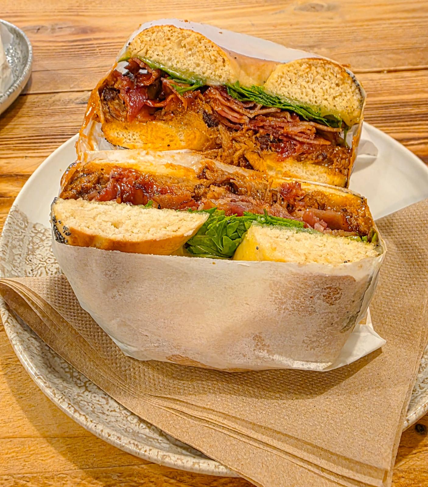 With a wide selection of fillings, there’s something for everyone, including gluten-free and vegan options. Choose from classics like the Caesar, filled with roast chicken, Caesar dressing, smoked bacon and shaved Parmesan, topped with fresh rocket, or the tempting New Yorker, stacked with pastrami, Monterey Jack cheese, American mustard and pickles, finished with fresh rocket. For something bold and hearty, the BBQ Hunters delivers seasoned pork, BBQ sauce, Monterey Jack and smoked bacon, all topped with fresh rocket.