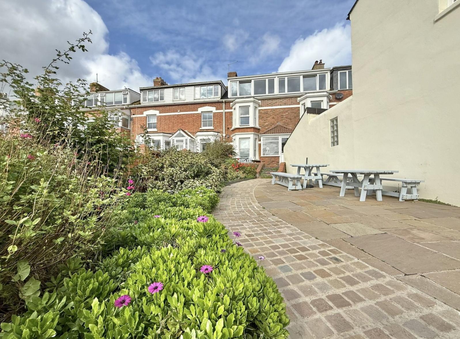 The apartment is a small but cosy one bedroom, one bathroom property which has the added benefit of a shared outside communal area with seating areas and views to the sea.