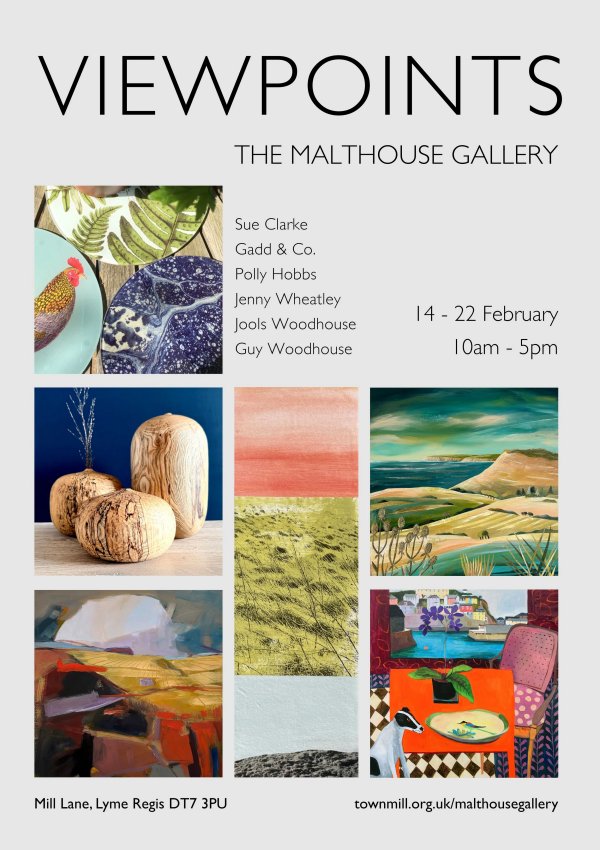 Viewpoints is a new exhibition featuring the work of six Wessex artists responding to the diverse landscape around them: Sue Clarke, Gadd & Co., Polly Hobbs, Jenny Wheatley, Jools Woodhouse and Guy Woodhouse.